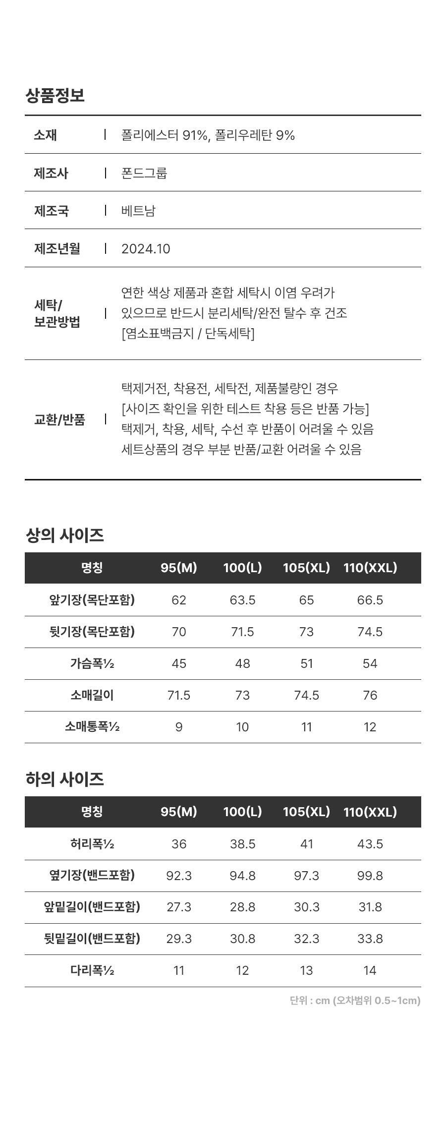 | 세탁방법 및 취급시 주의사항 | 상품 상세 설명 참조 |