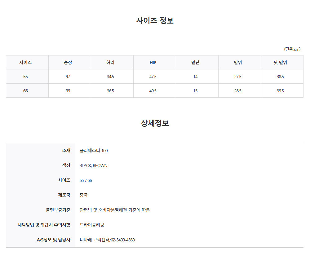 | 세탁방법 및 취급시 주의사항 | 상품상세설명참조 |