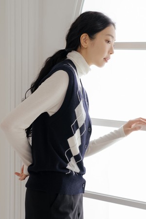 캐시미어 블렌딩 아가일 베스트 D/NY