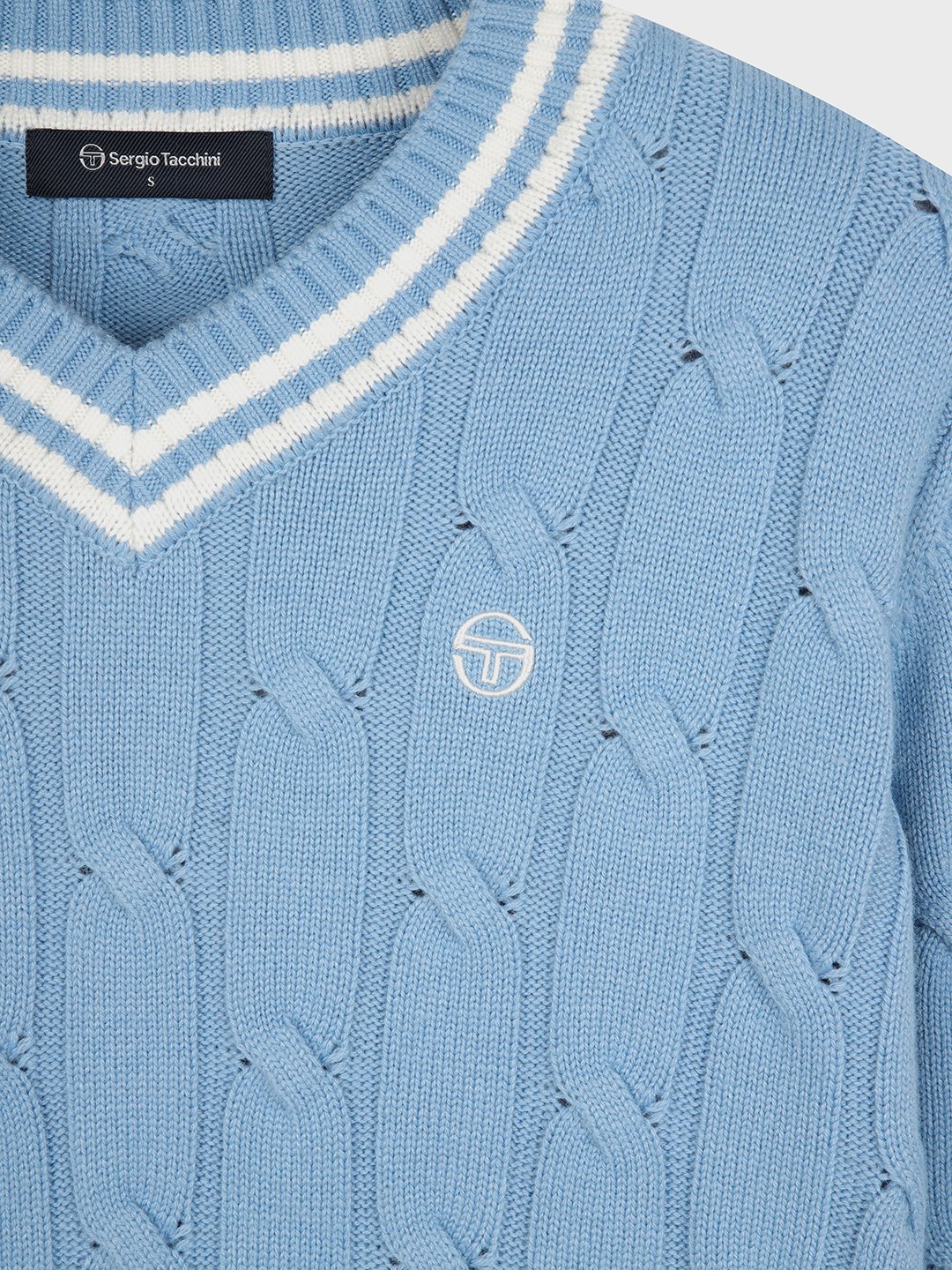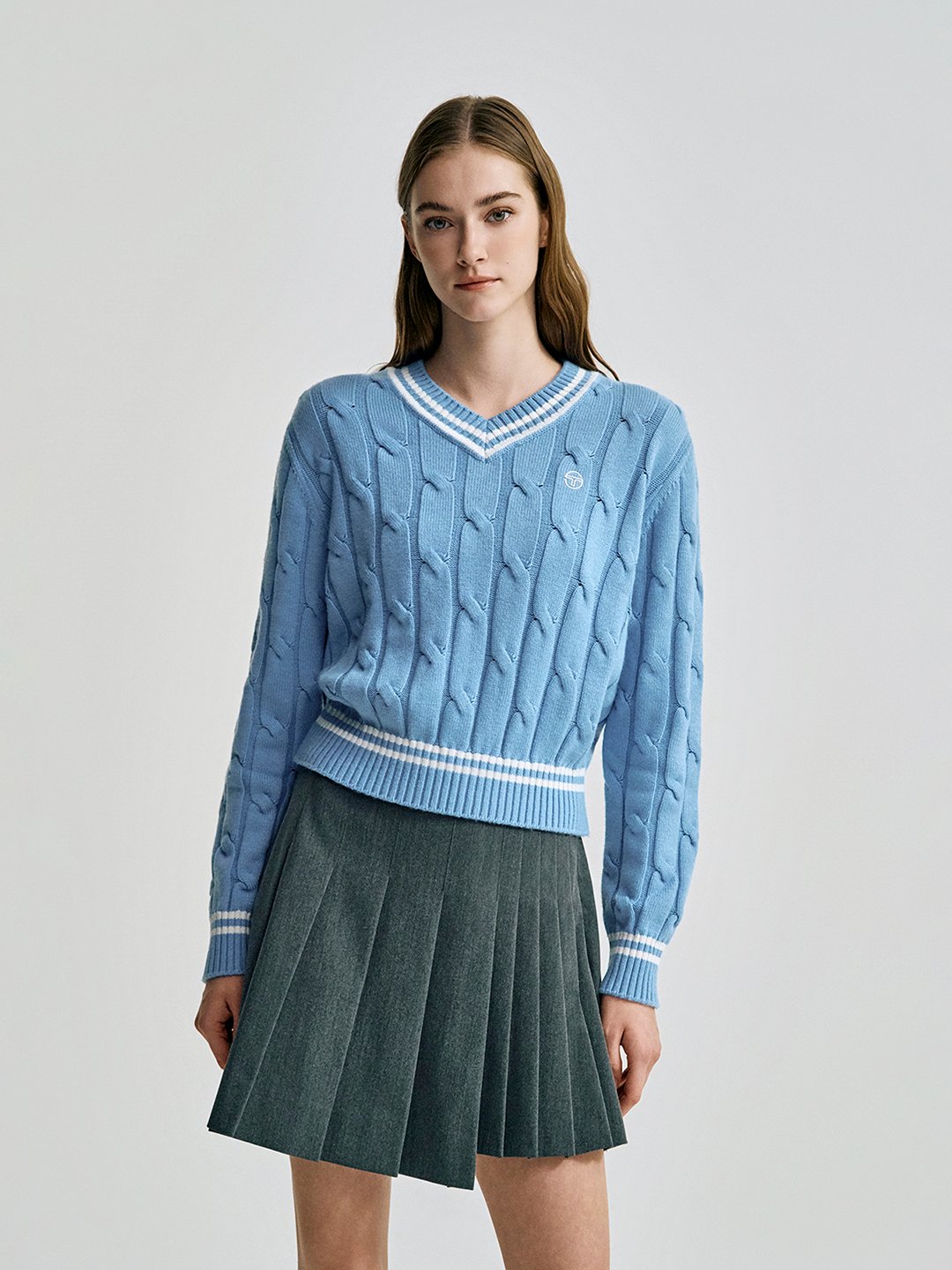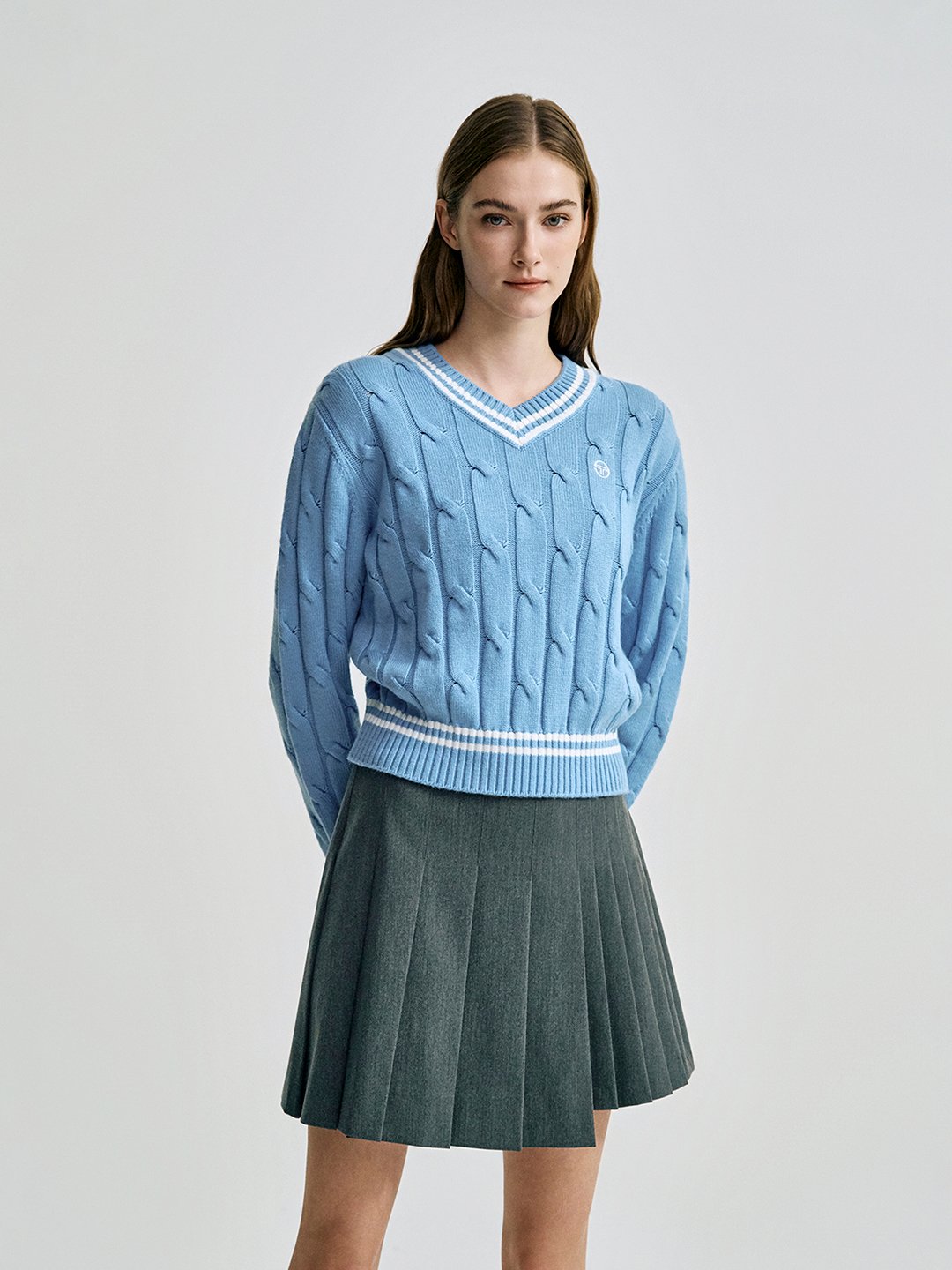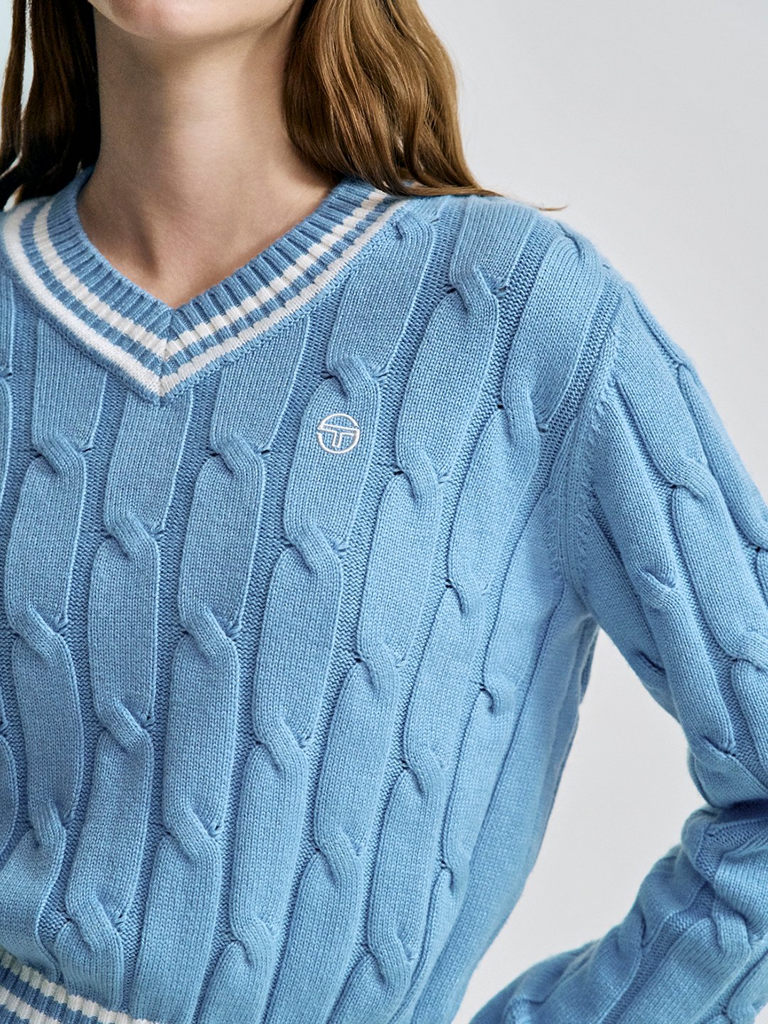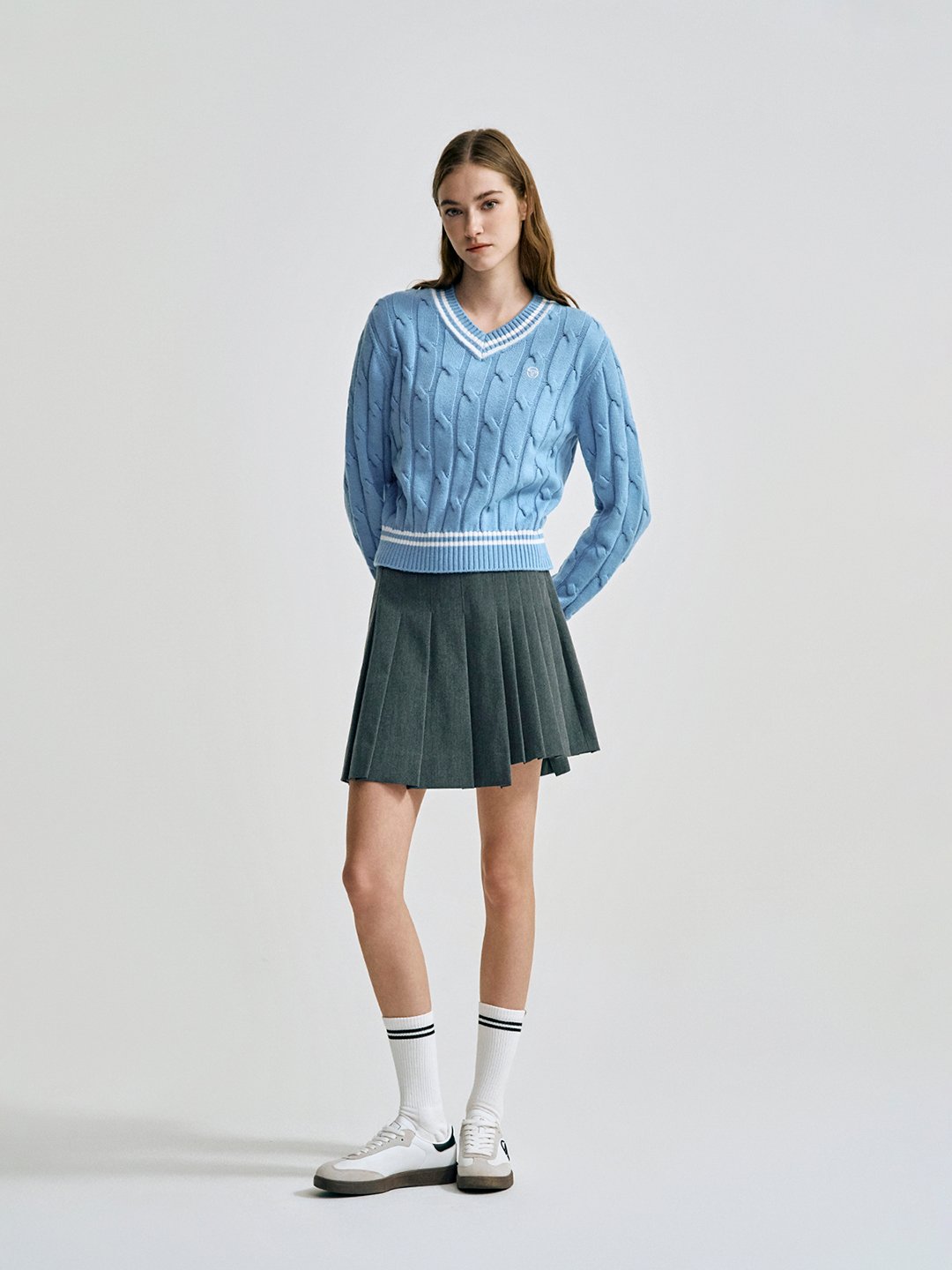 W 브이넥 케이블 스웨터