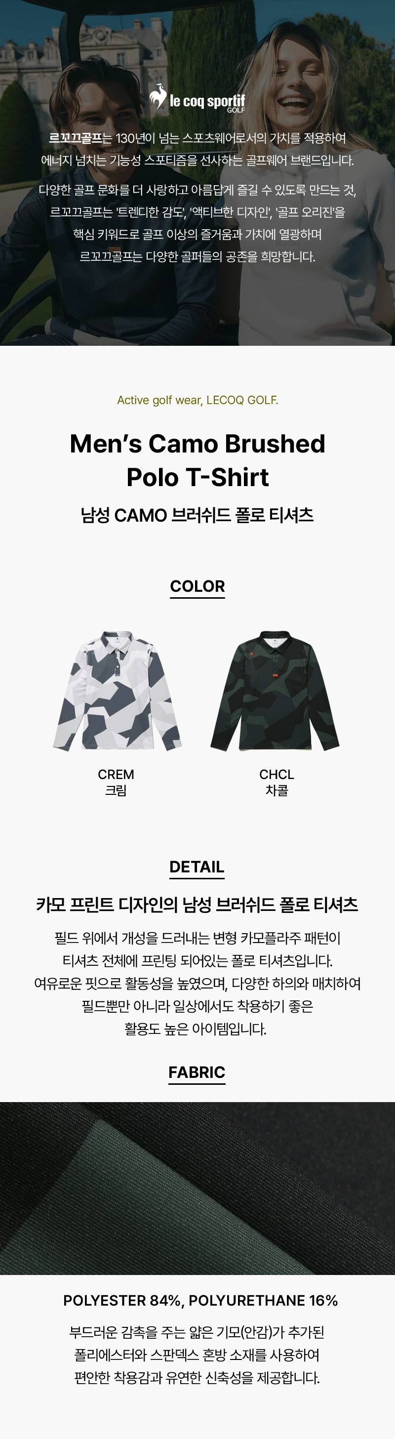 남성 CAMO 브러쉬드 폴로 티셔츠 _CREM GQ421MTLO4