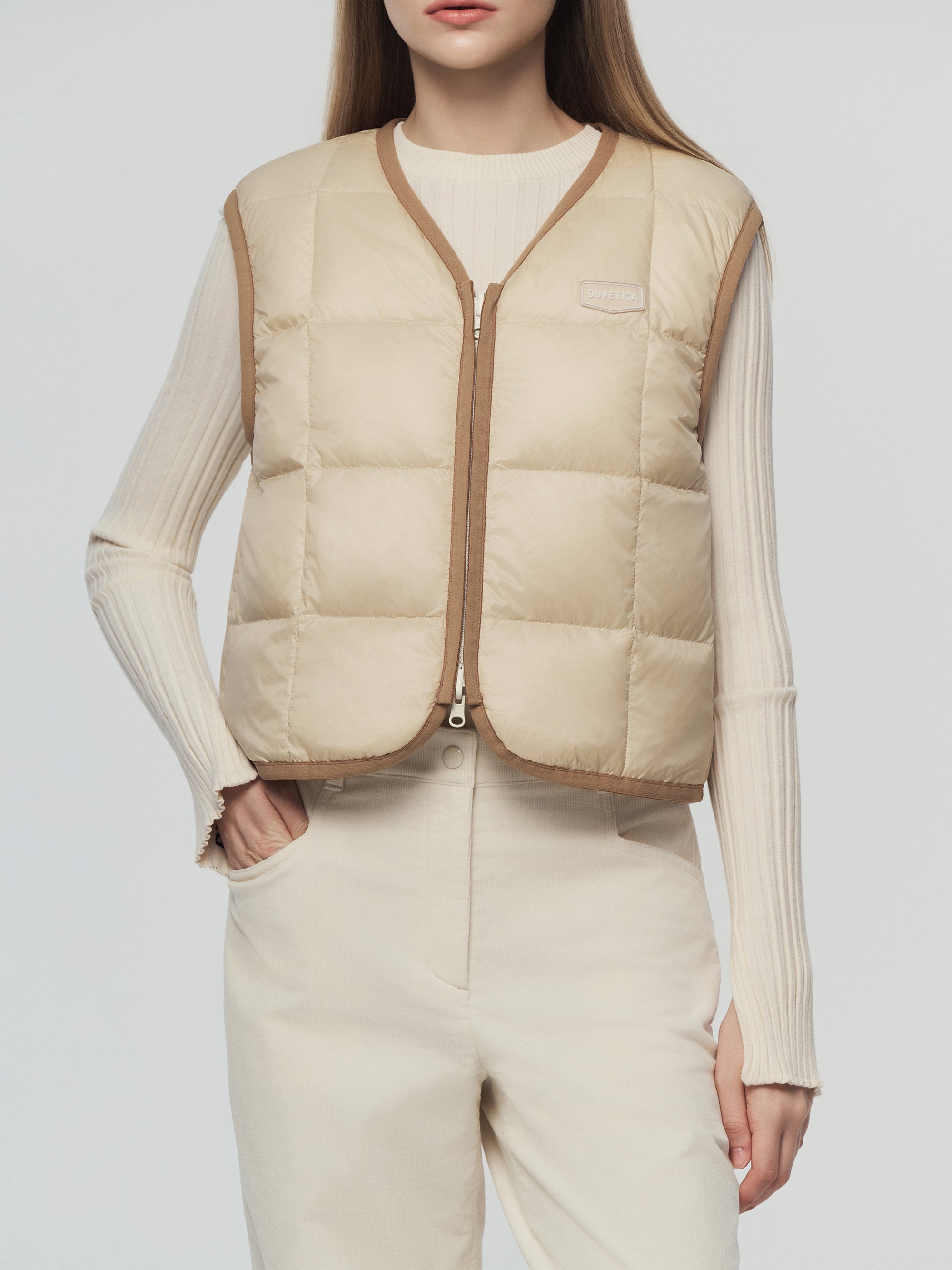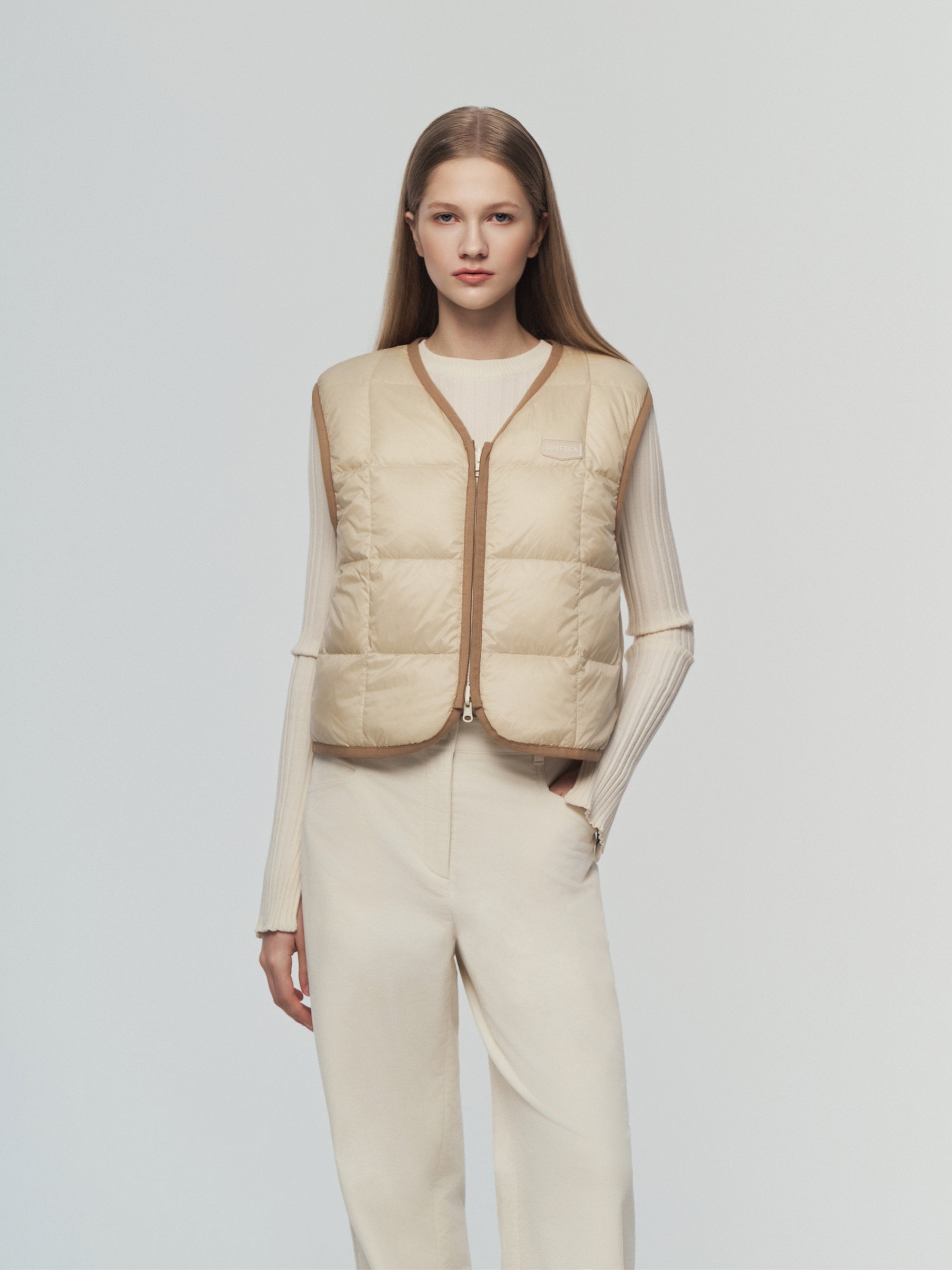 - 실용도 높은 브이넥 배색 리버시블 다운 베스트