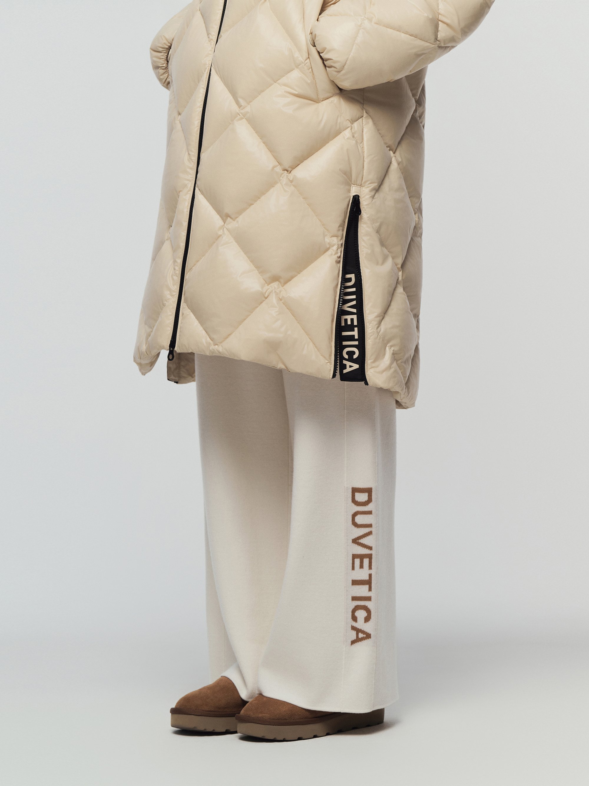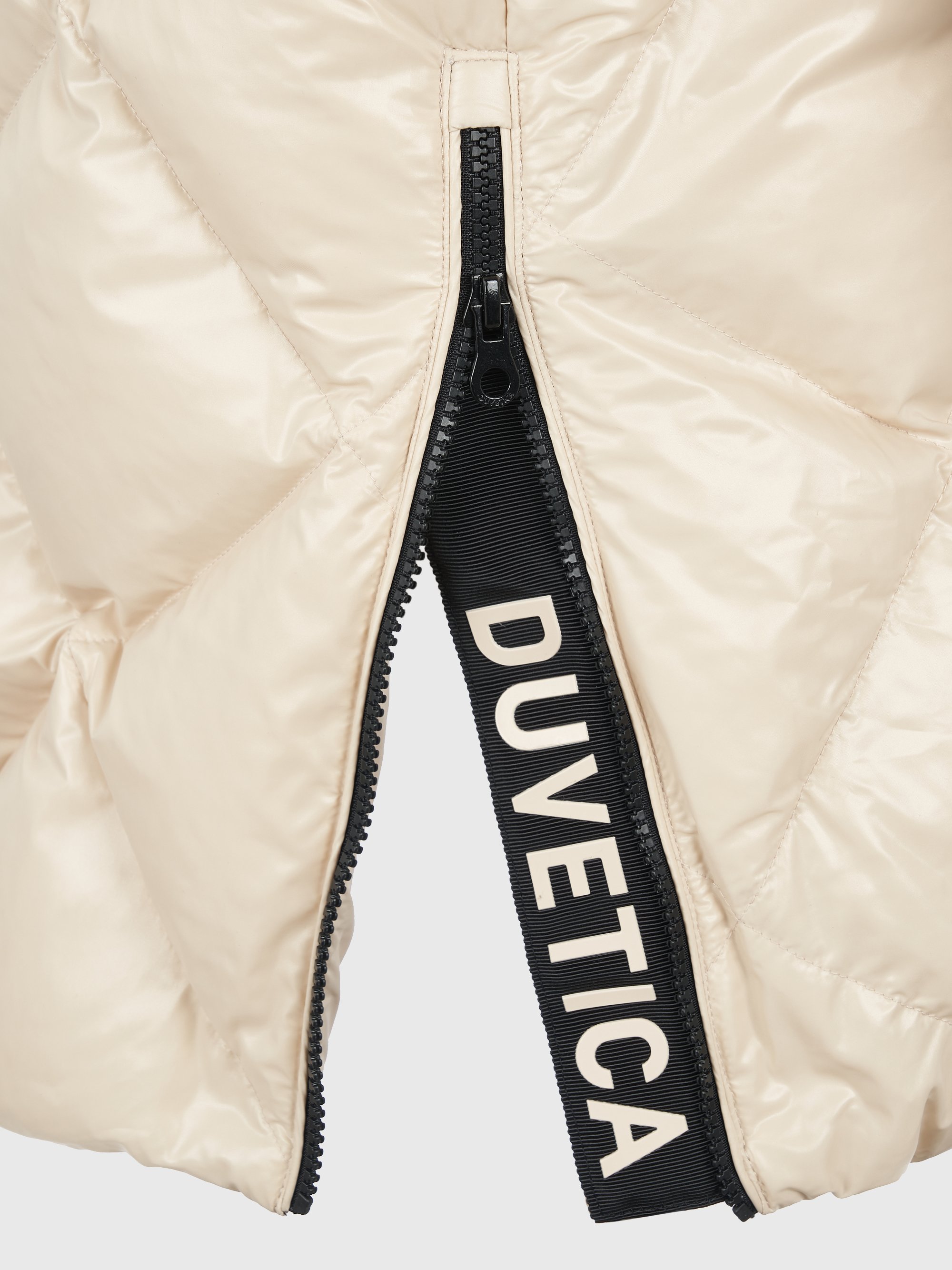 - 사이드 지퍼 오픈 시 듀베티카 로고 슬릿이 드러나 A라인 실루엣으로 변형 가능