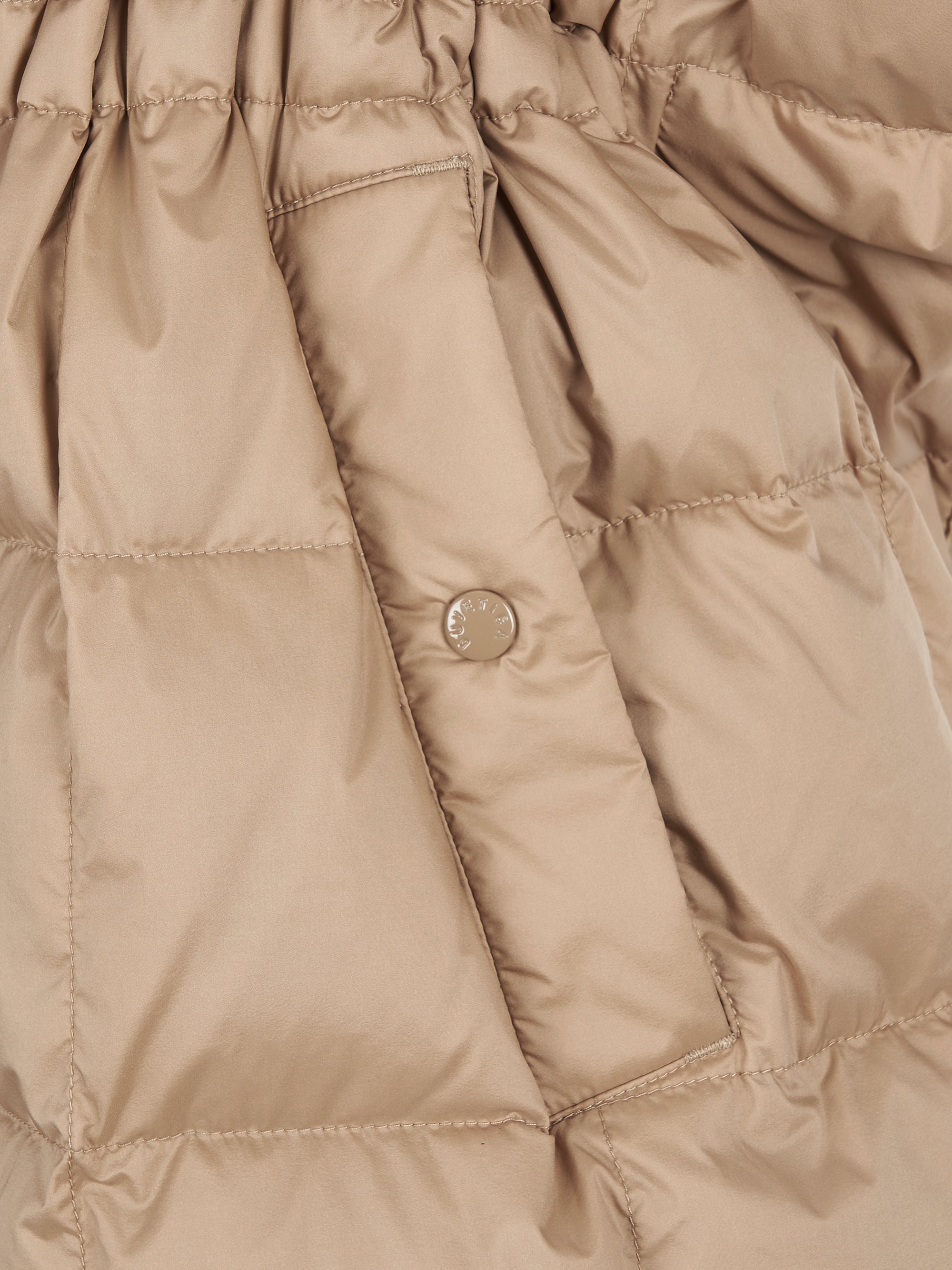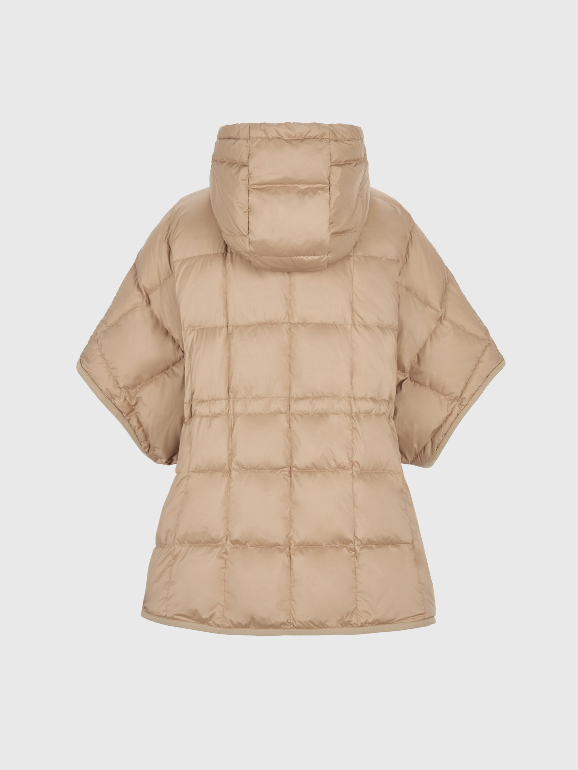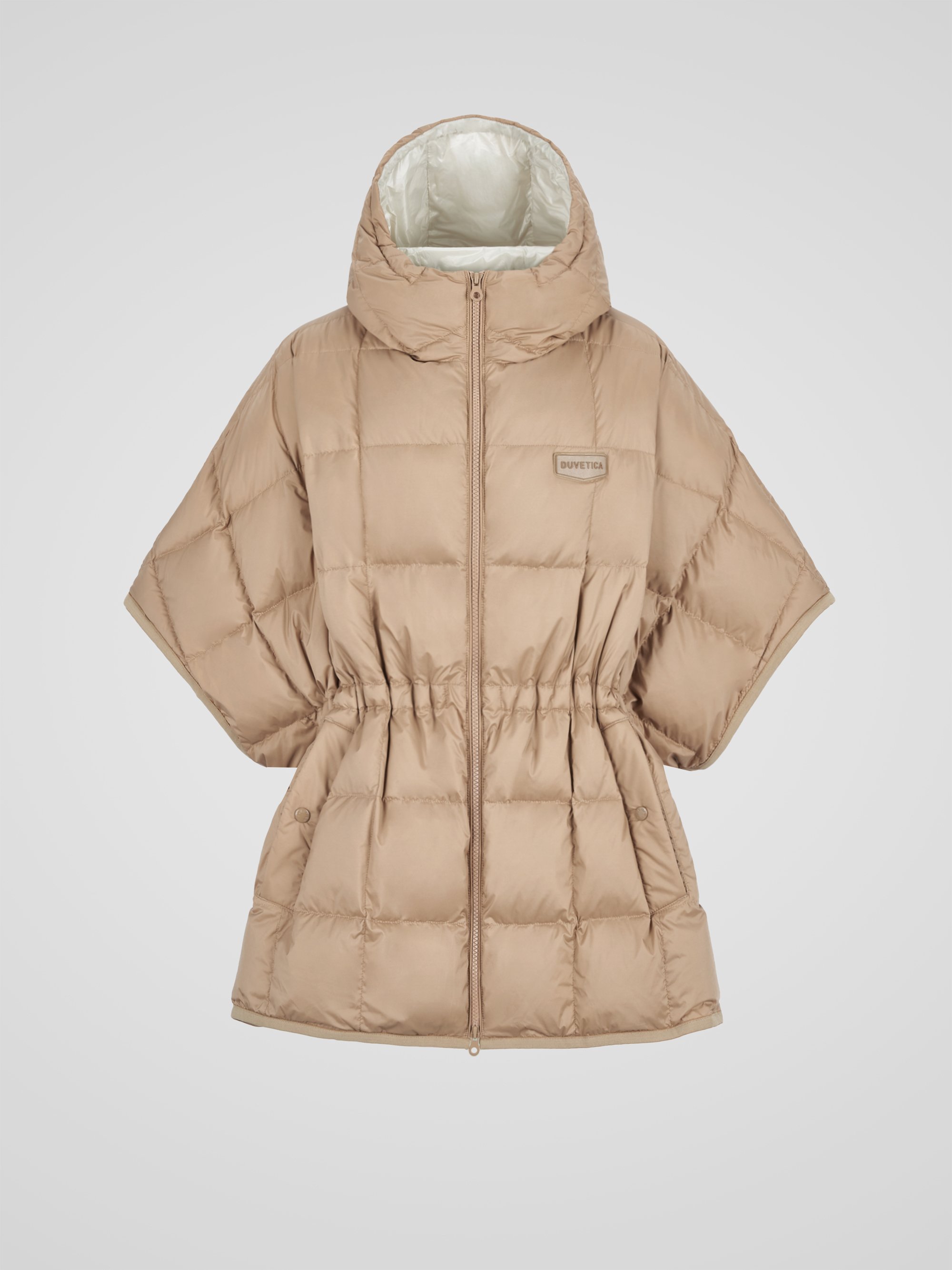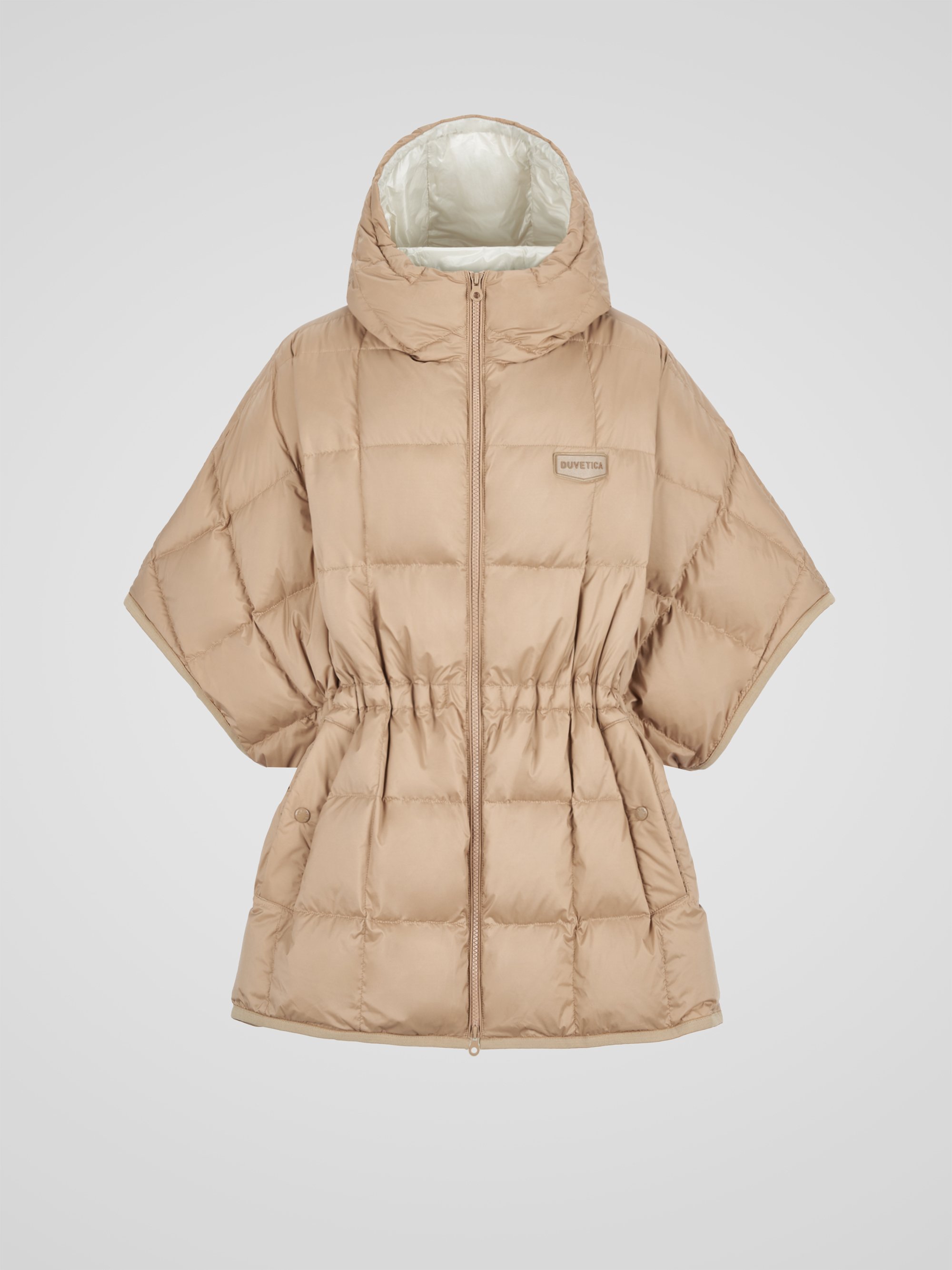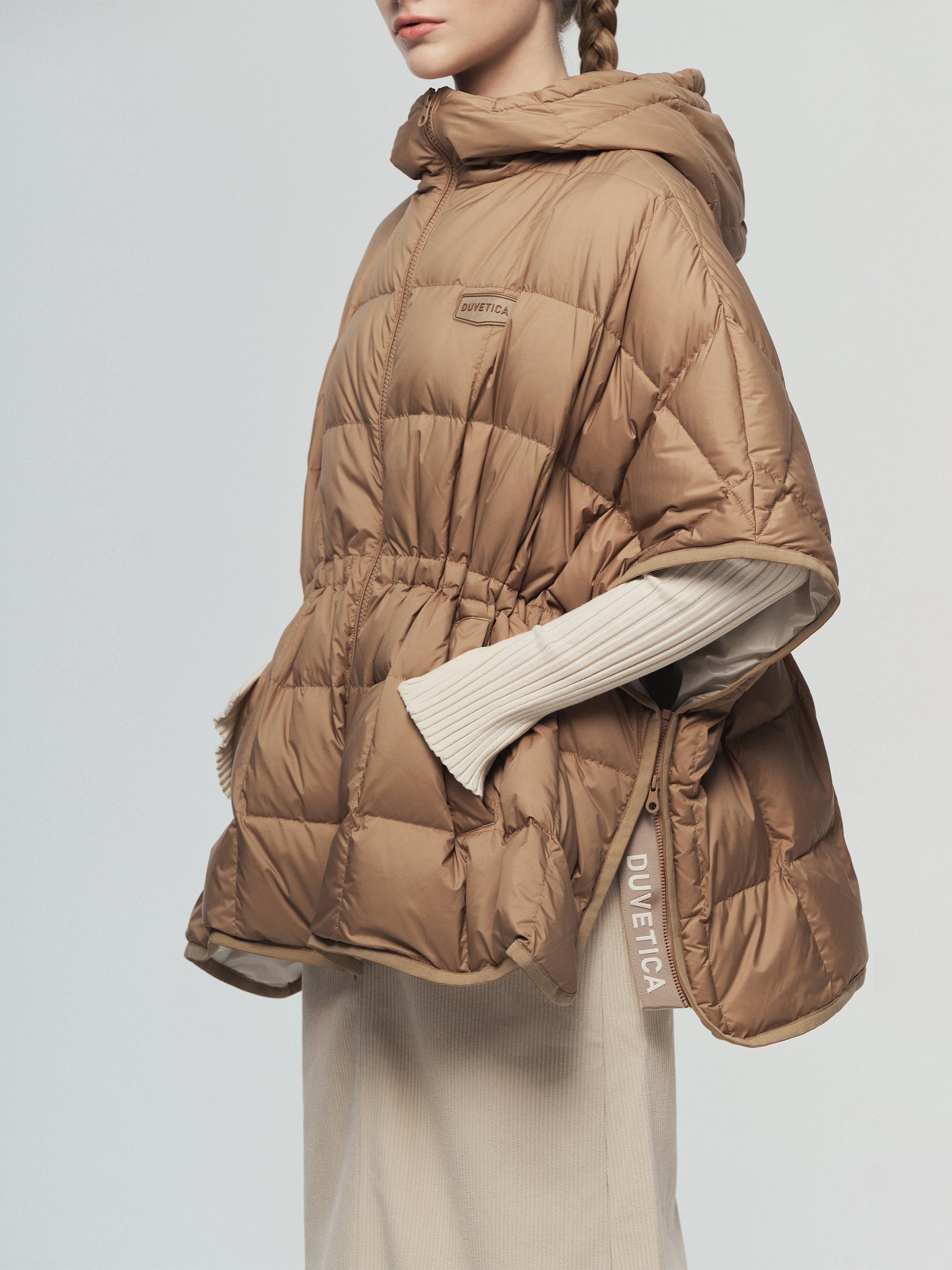 - 정형화된 다운자켓 형태가 아닌 판쵸 형태로 여성스러운 실루엣