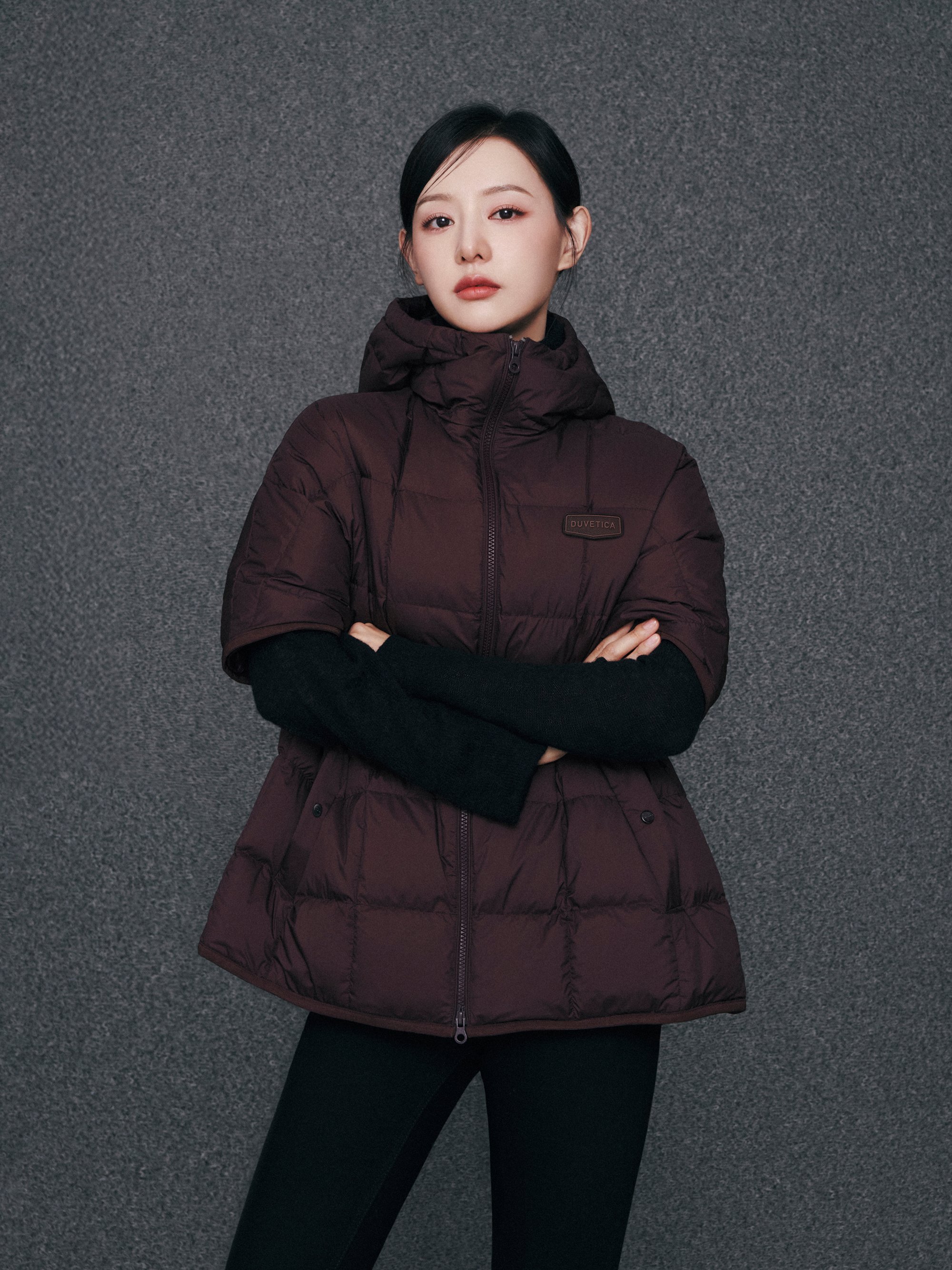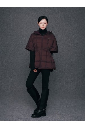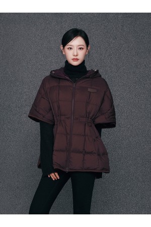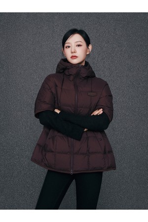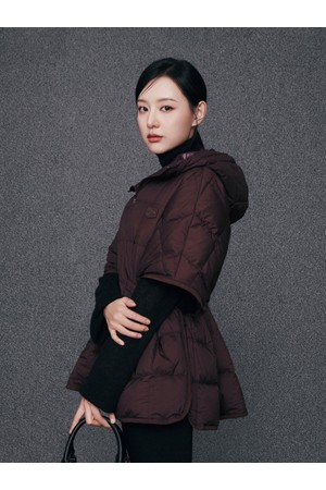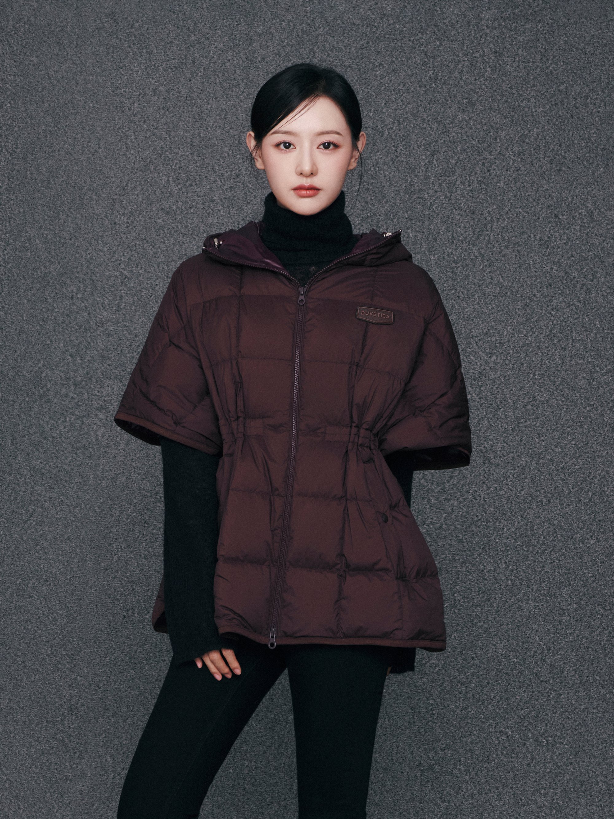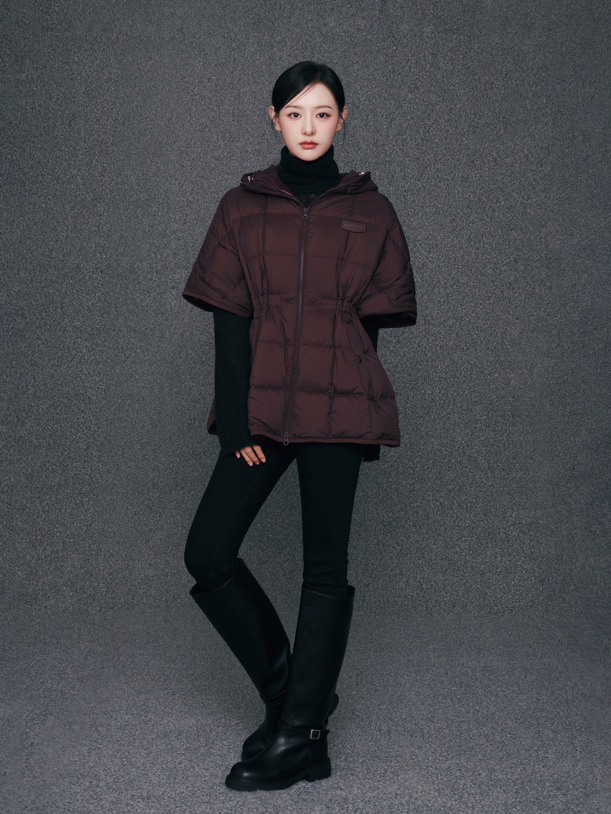 - 정형화된 다운자켓 형태가 아닌 판쵸 형태로 여성스러운 실루엣