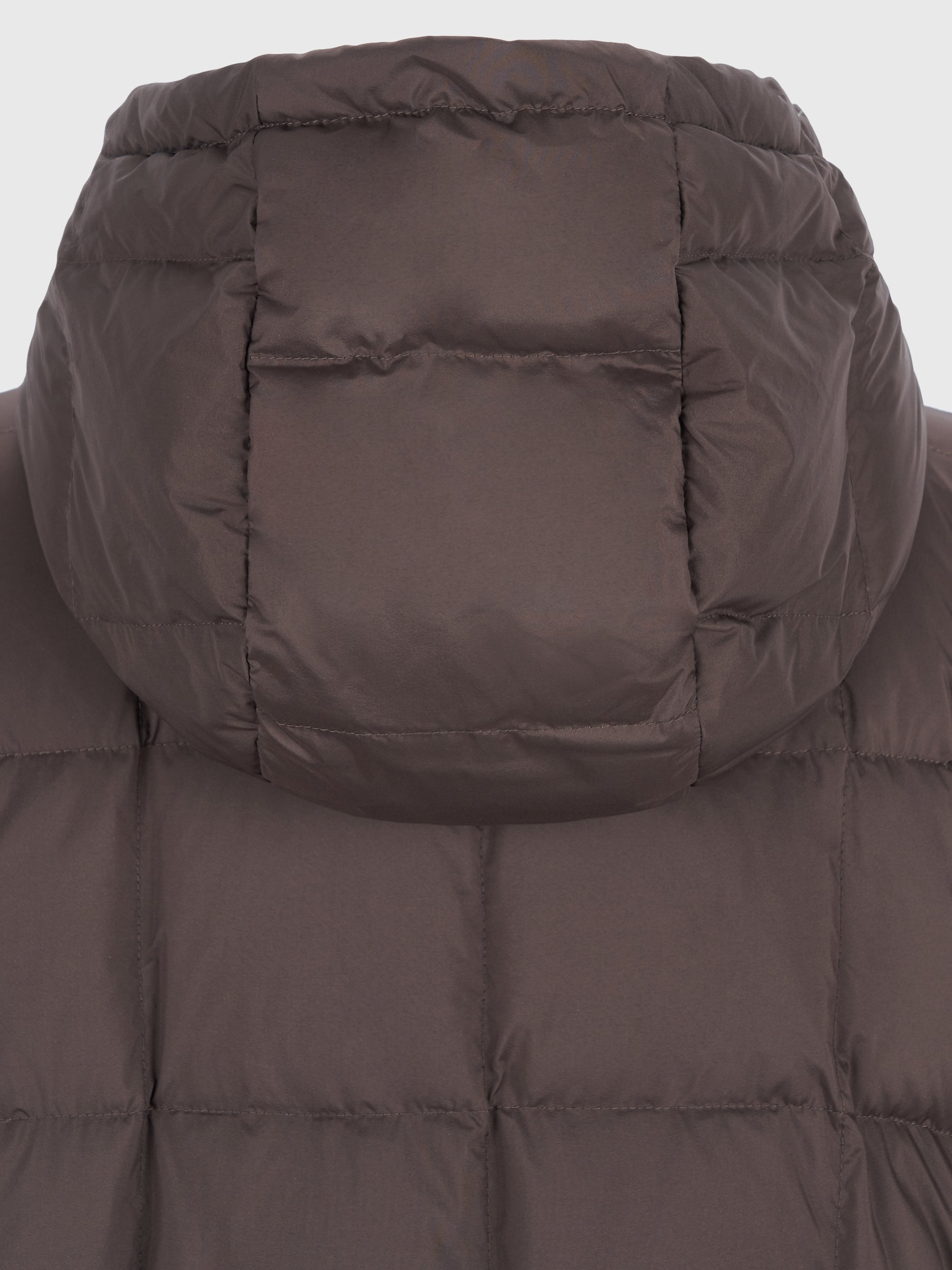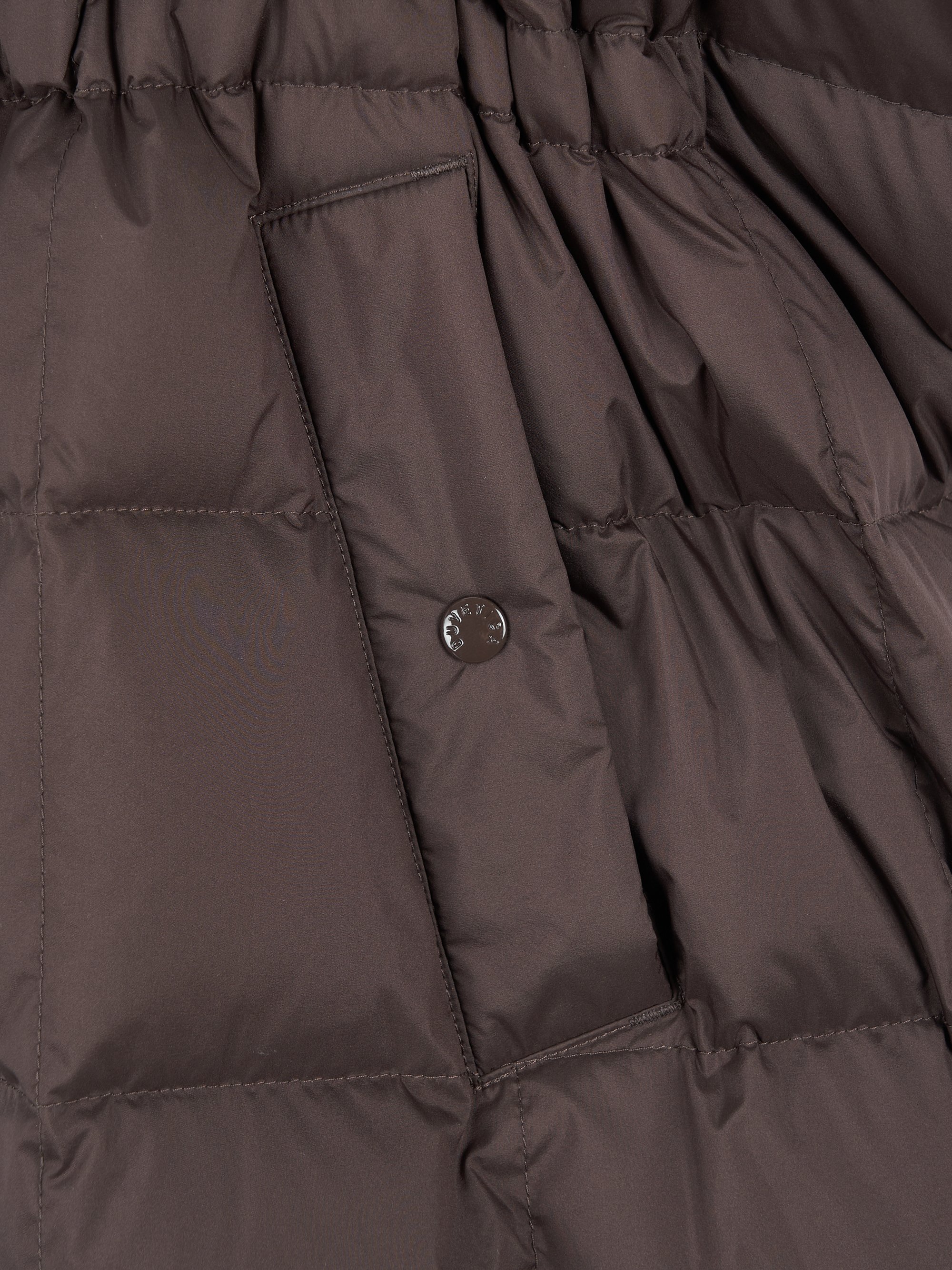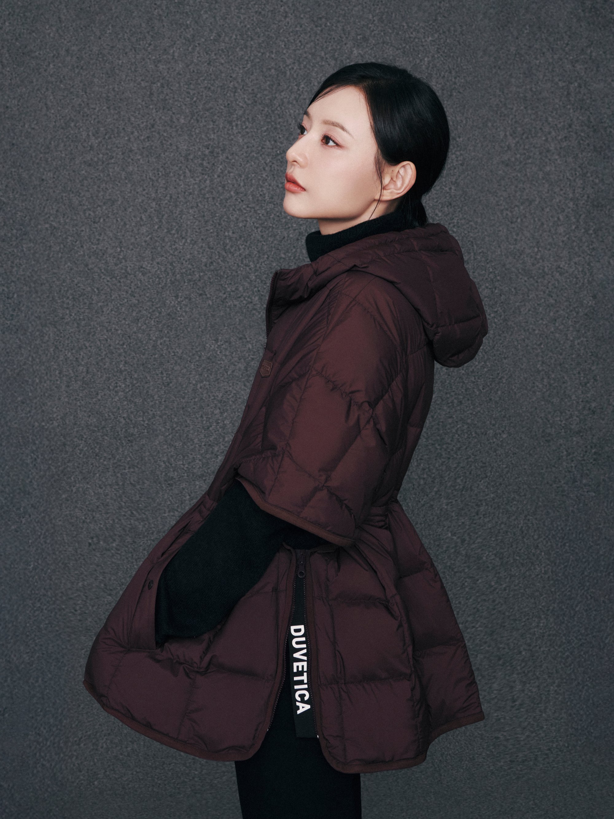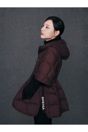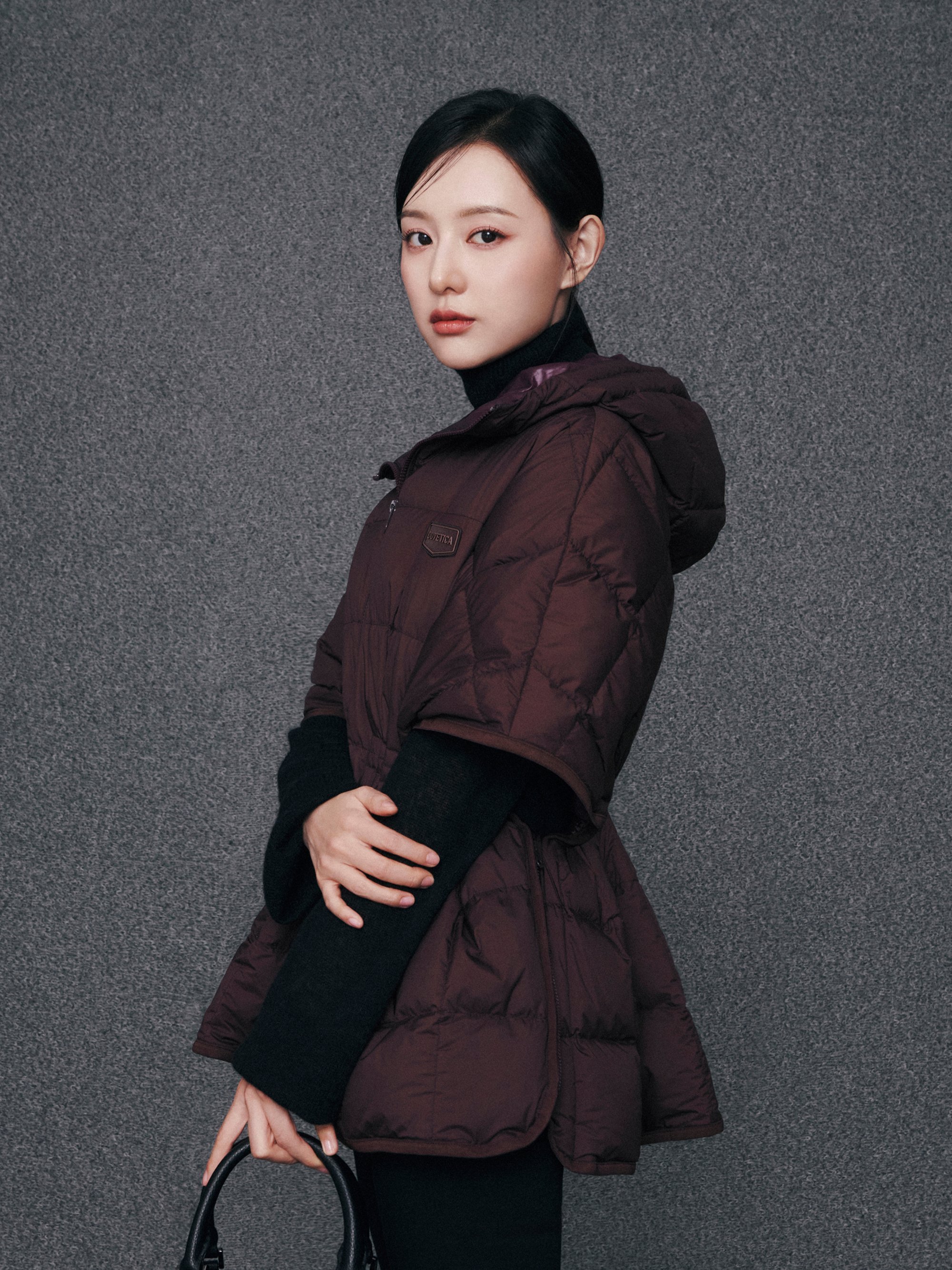 - 정형화된 다운자켓 형태가 아닌 판쵸 형태로 여성스러운 실루엣