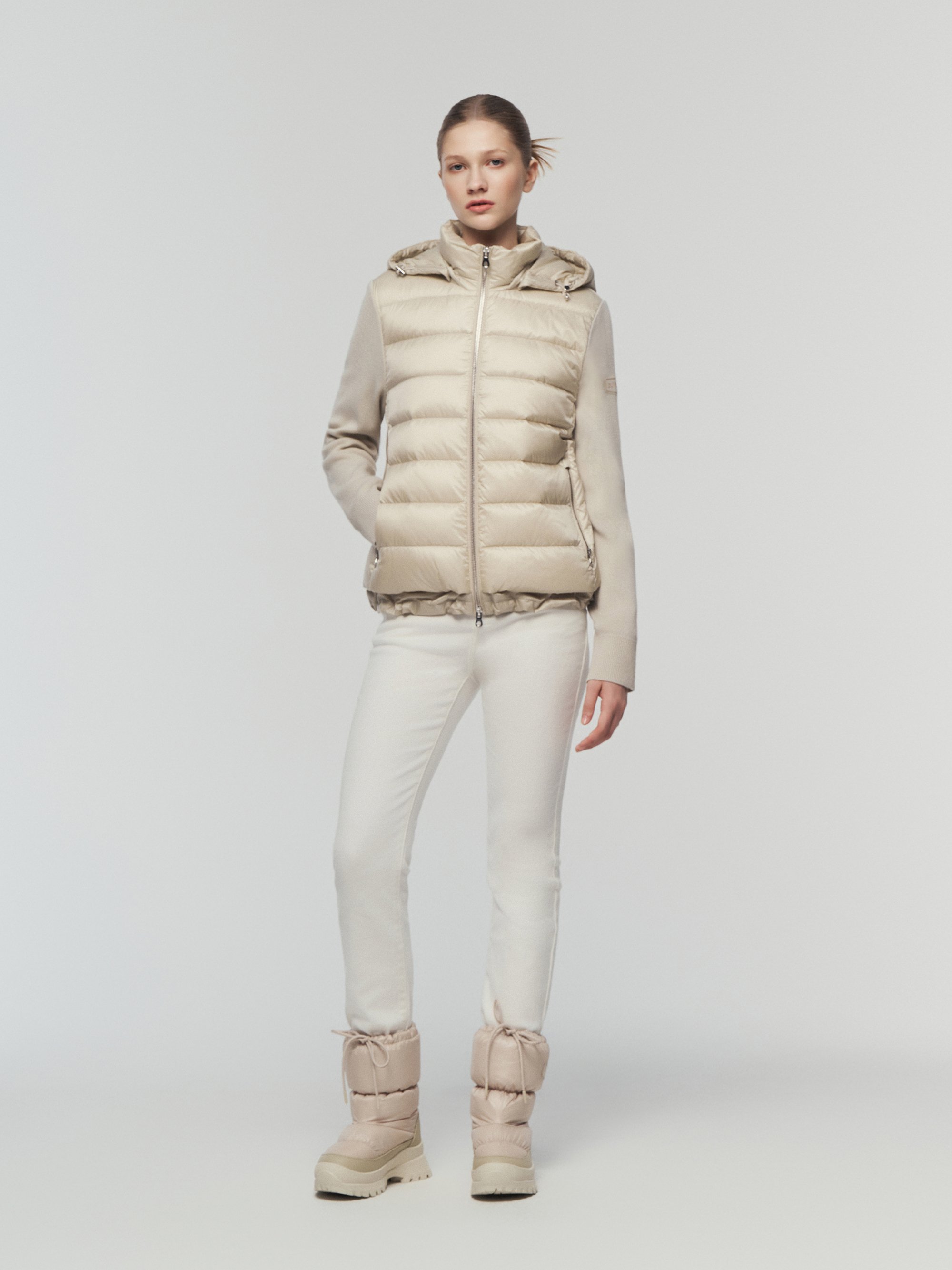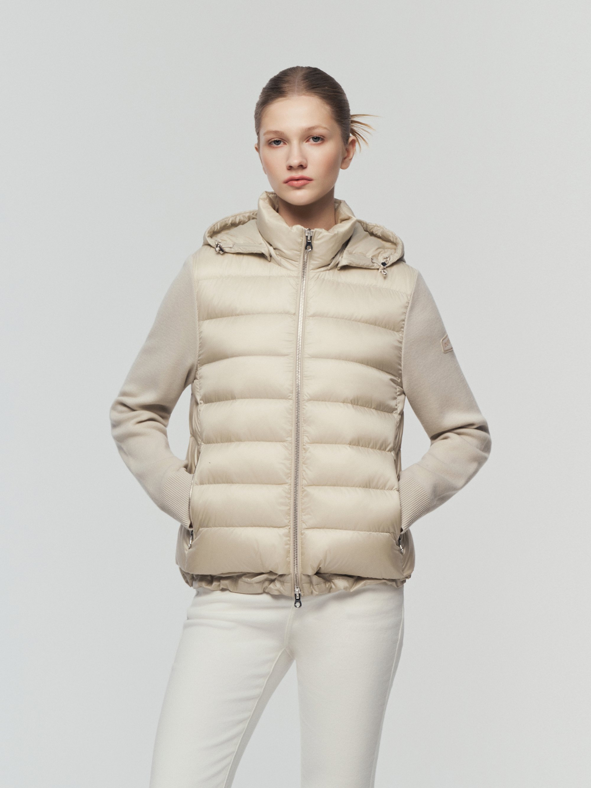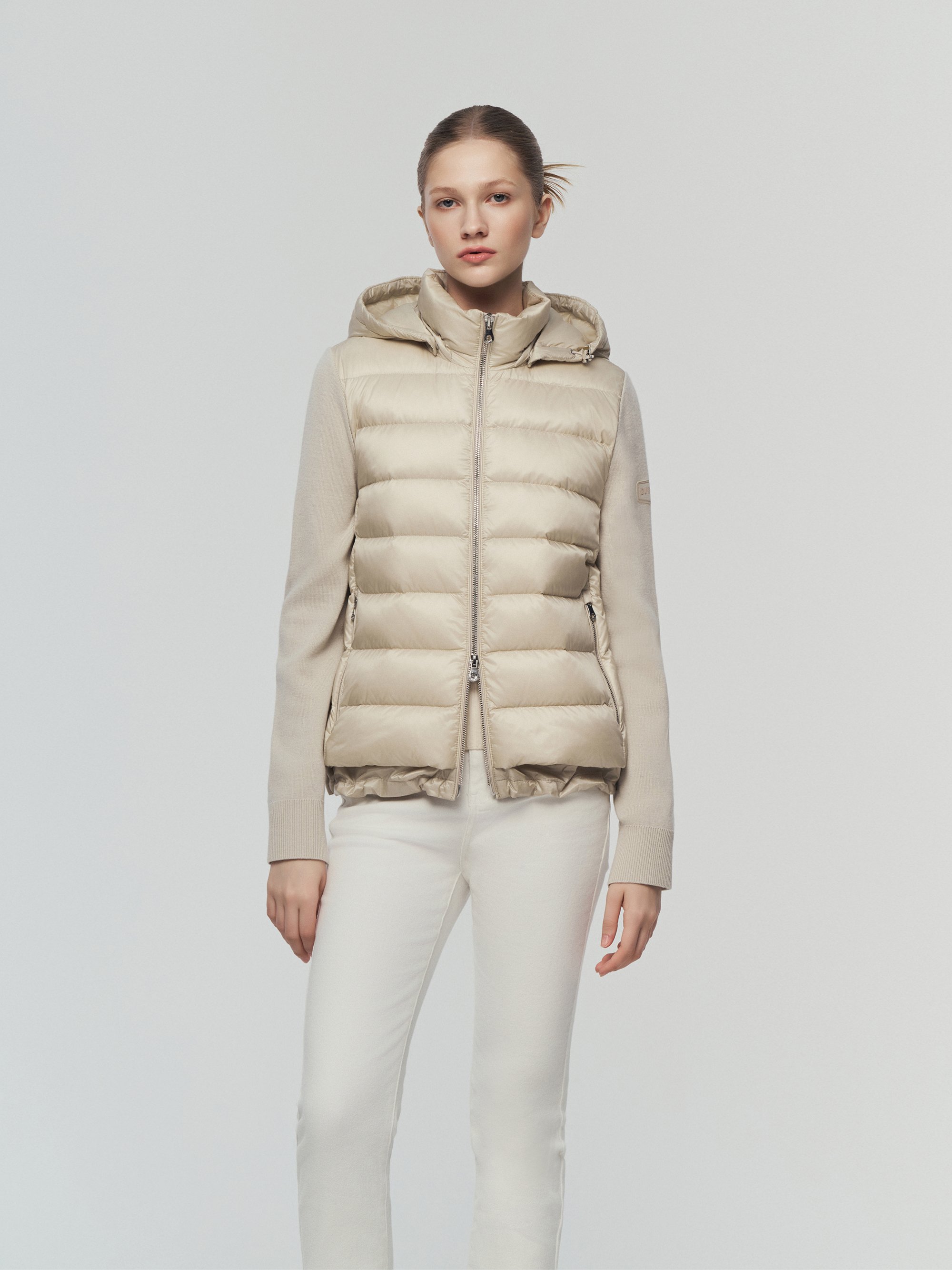 - 데일리-레저 라이프에 적합한 여성 니트 하이브리드 경량 다운 자켓