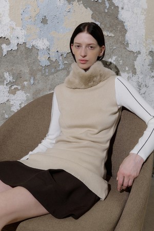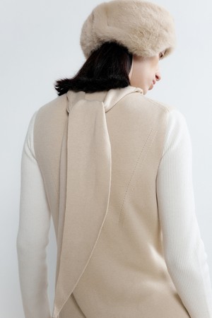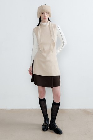 ㆍ옆 트임과 스카프 디테일이 여성스러운 슬리브리스 니트 드레스