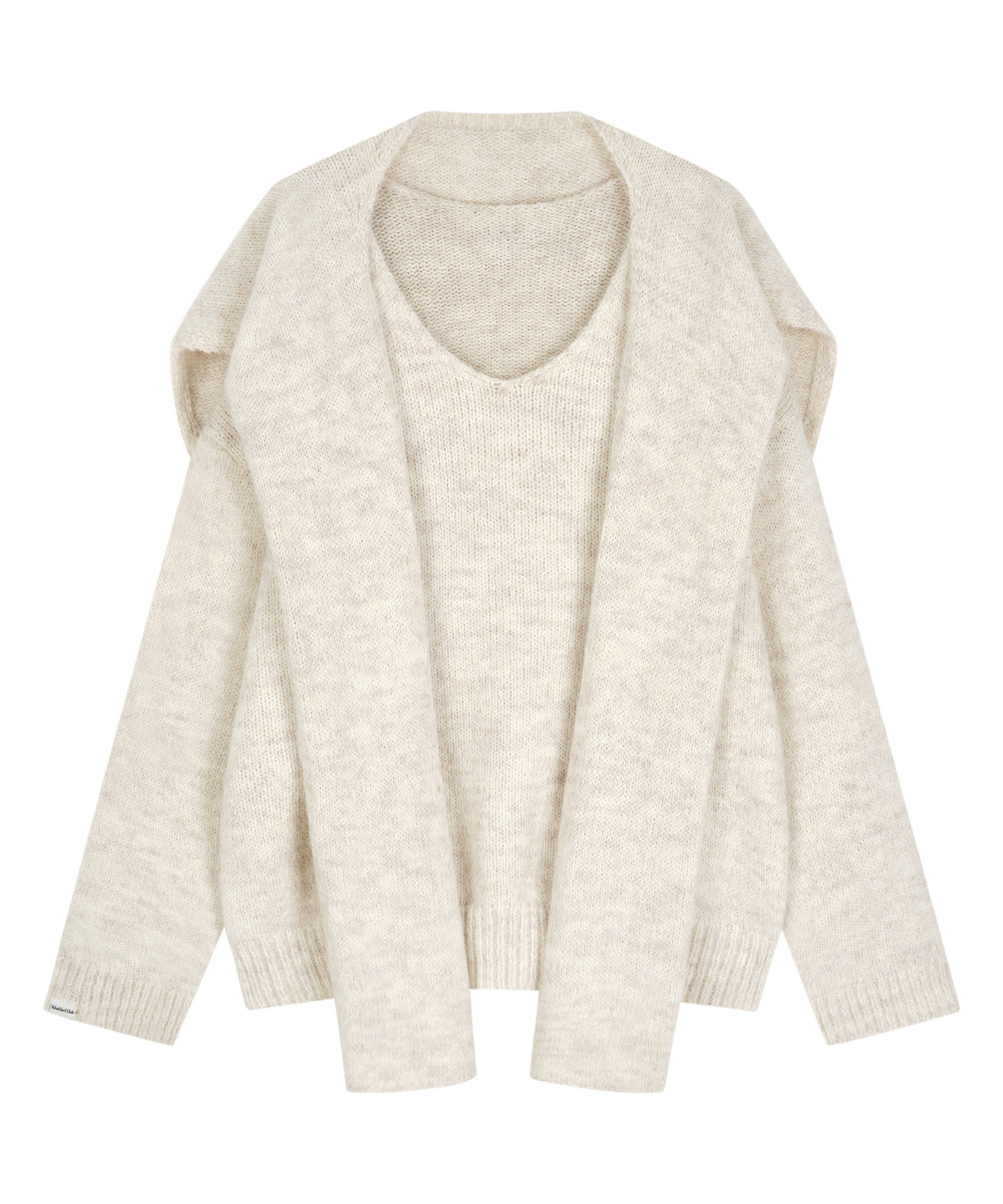 [SET] 투웨이 숄 + V넥 오버핏 니트 (Ivory)