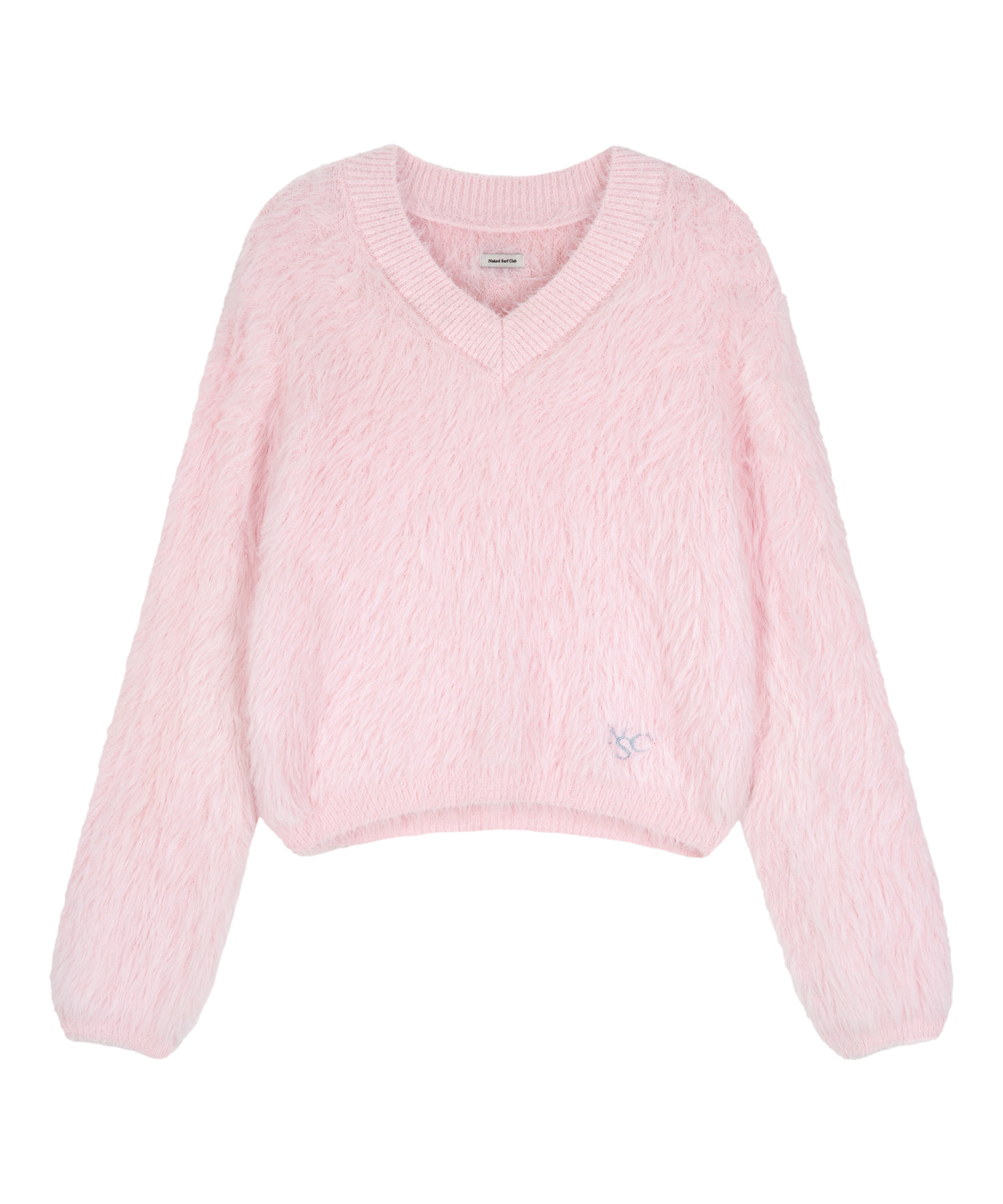 소프트 앙고라 브이넥 니트 (Baby Pink)