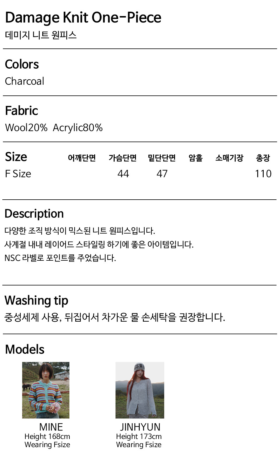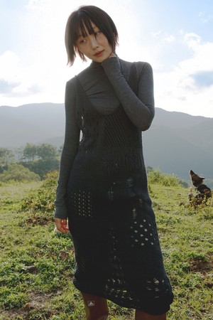 데미지 니트 원피스 (Charcoal)