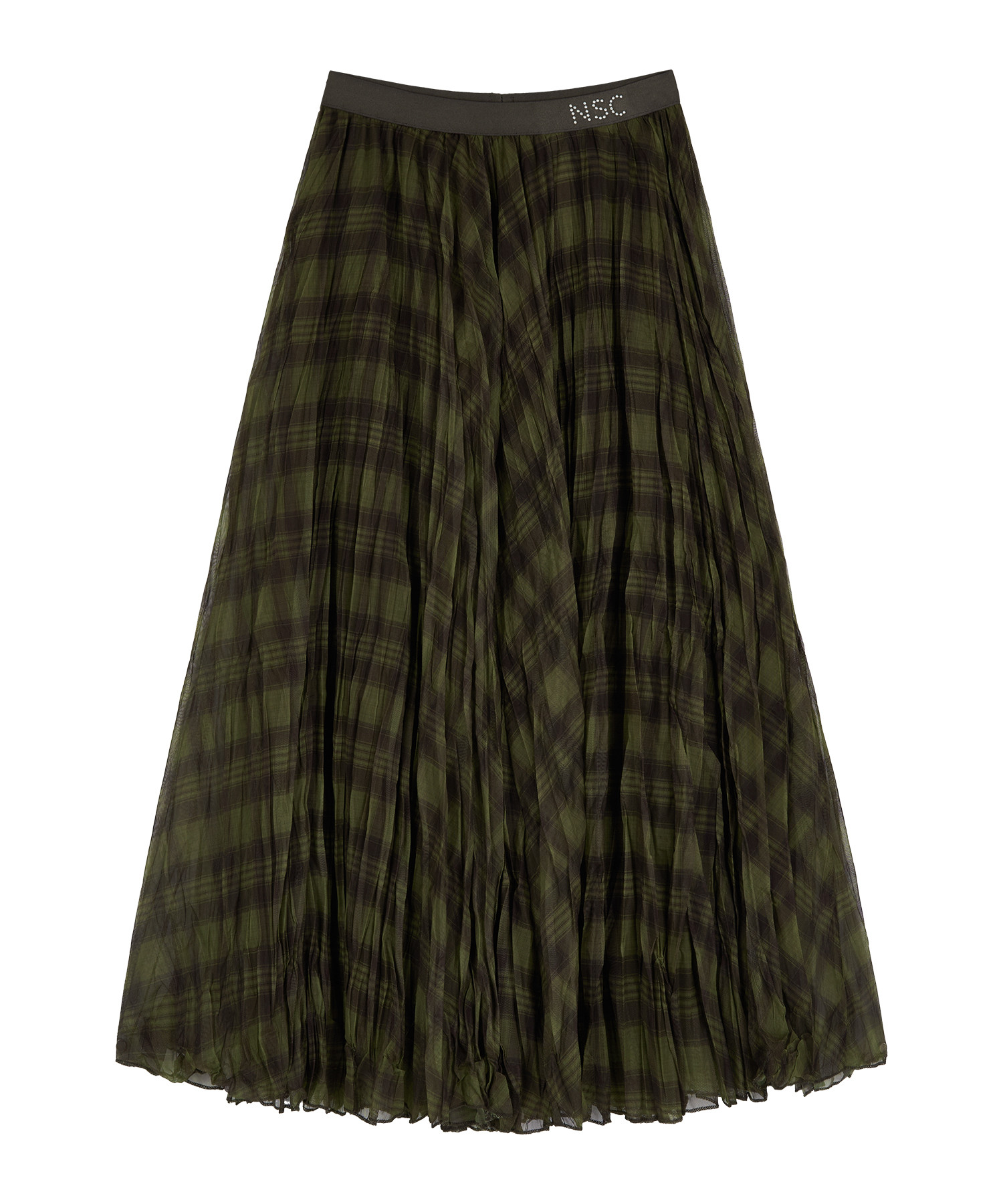 로맨틱 체크 크링클 롱스커트 (Olive Khaki)