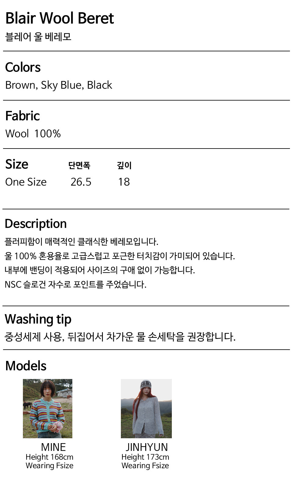 세탁방법 및 취급시 주의사항 | 상품상세설명참조 |