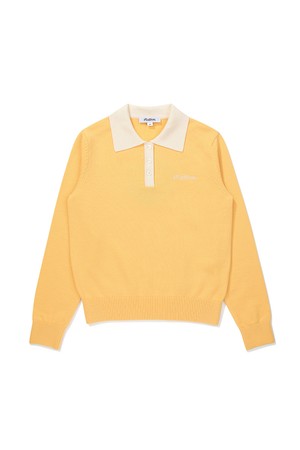 여성 카라 배색 롱슬리브 홑겹 니트 YELLOW (WOMAN)