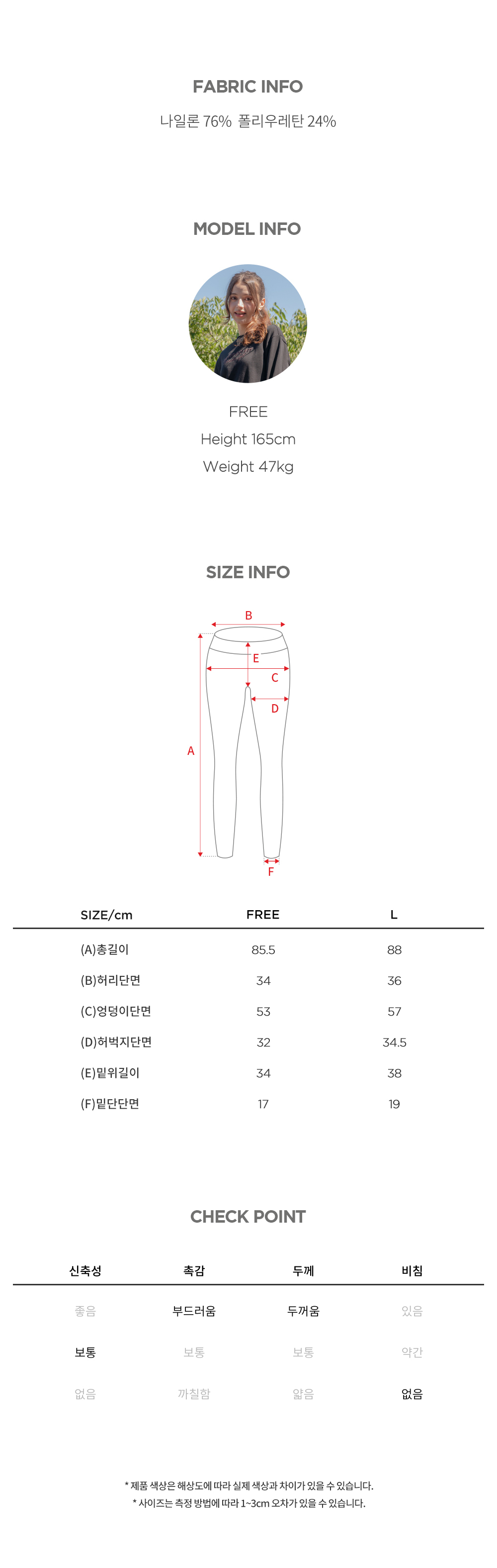 | 소재 | 나일론 76% 폴리우레탄 24% |
