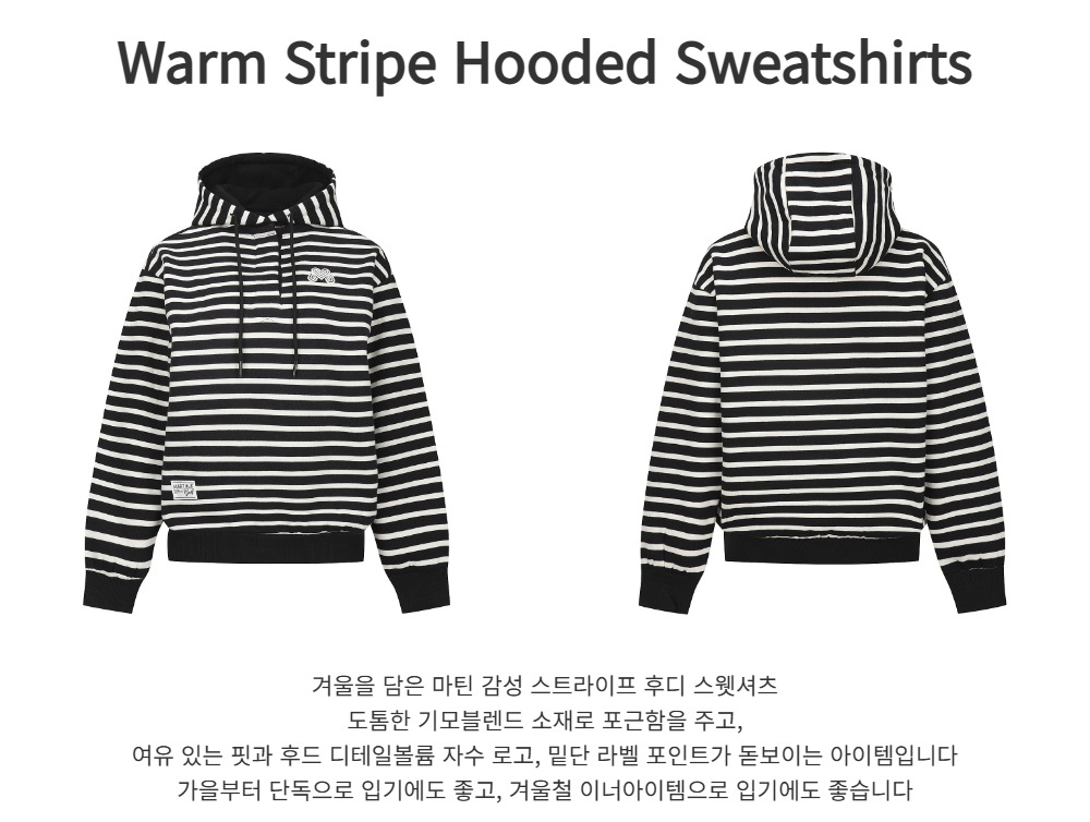 Warm Stripe Hooded Sweatshirts_BLACK