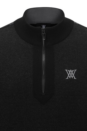[ANEW GOLF] M TWO TONE HALF ZIP-UP PULLOVER_BK