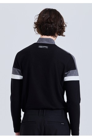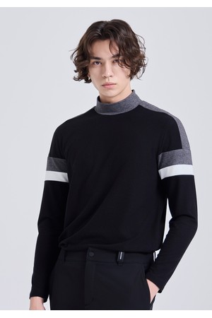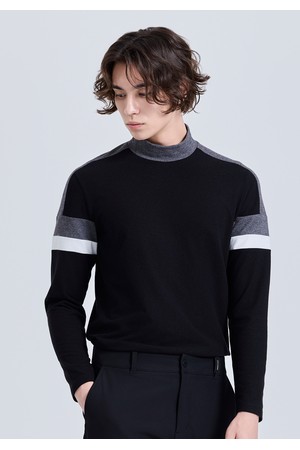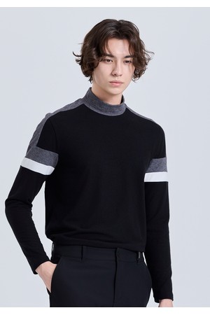 남성 기모 블럭배색 모크넥 긴팔 티셔츠 블랙