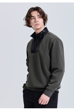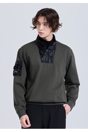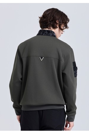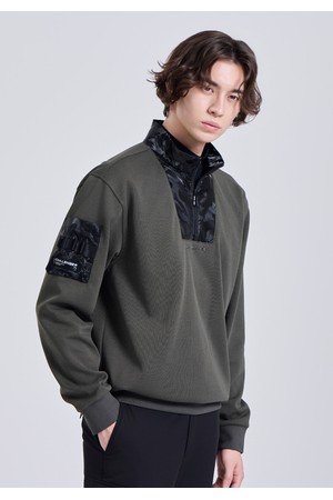 남성 카모포인트 기모 하이넥 반집업 긴팔 티셔츠 카키