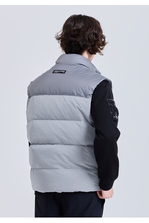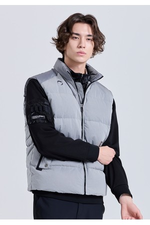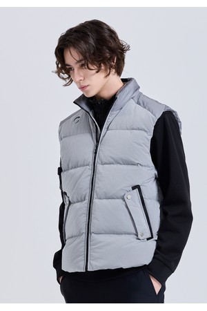 남성 배색 디테일 하이넥 다운 베스트 라이트그레이