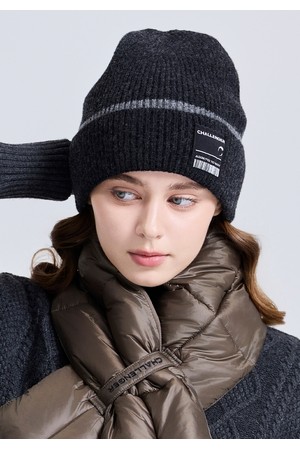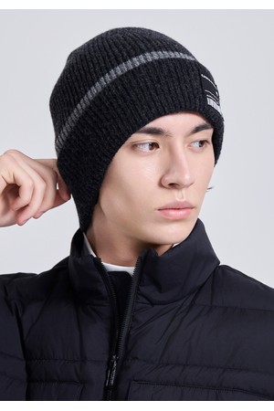 남성 라벨포인트 소프트원사 롤업 니트 비니 블랙