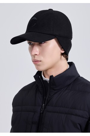 남성 울터치 니트 믹스 이어 커프 골프 볼캡 블랙