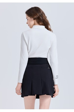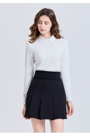 여성 소프트 기모 배색 카라 긴팔 티셔츠 화이트