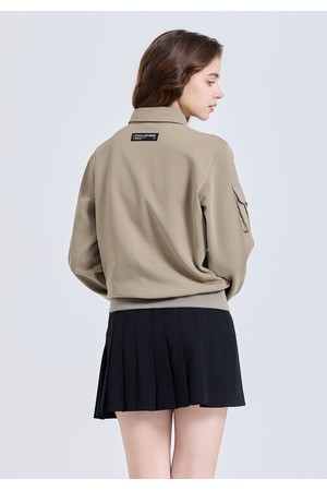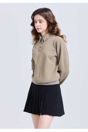 여성 우븐포켓 카라넥 긴팔 기모 티셔츠 베이지