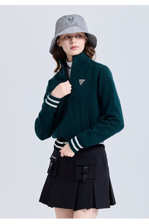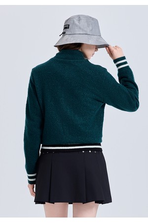 여성 방풍 부클 배색 니트 자켓 다크그린