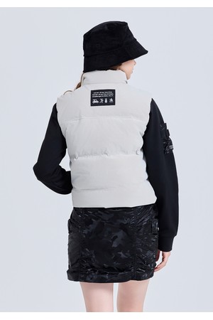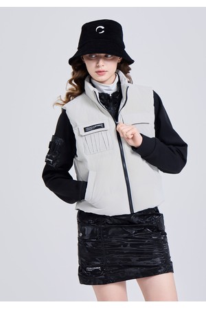 여성 유니크 포켓 크롭핏 다운 베스트 라이트베이지