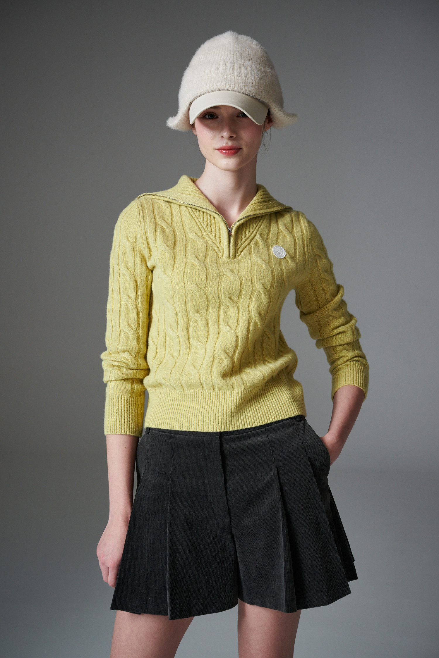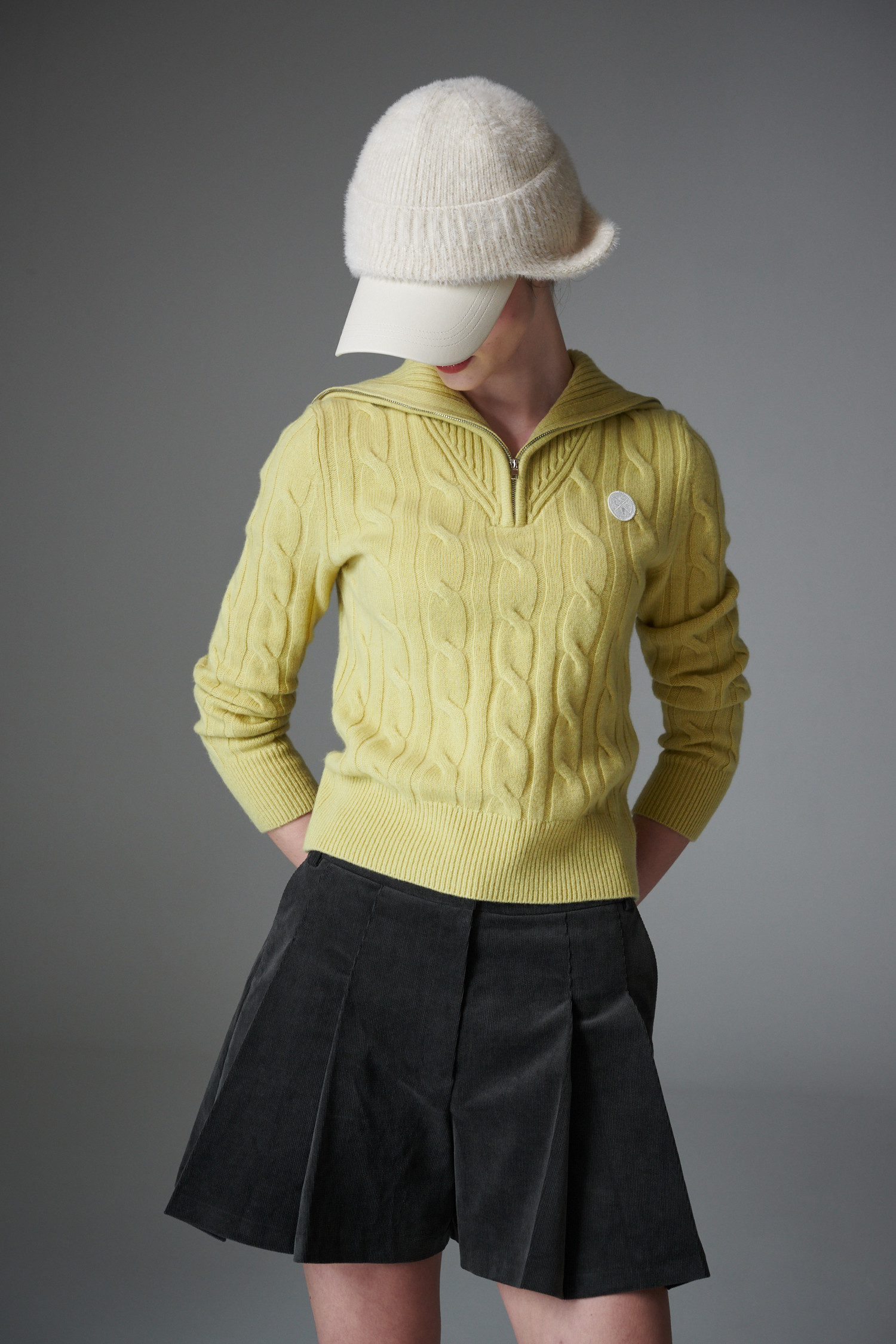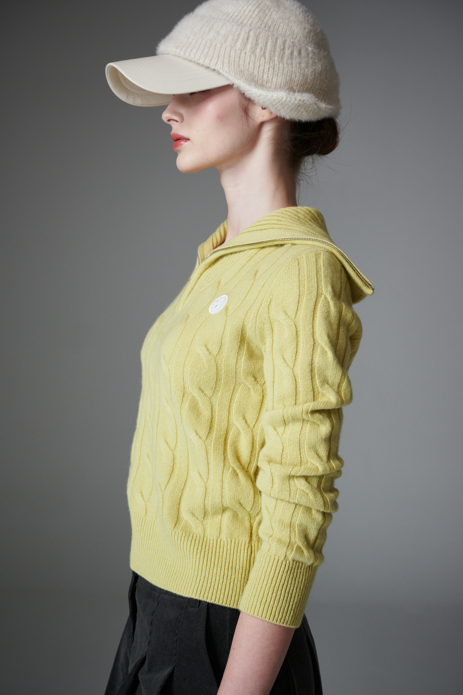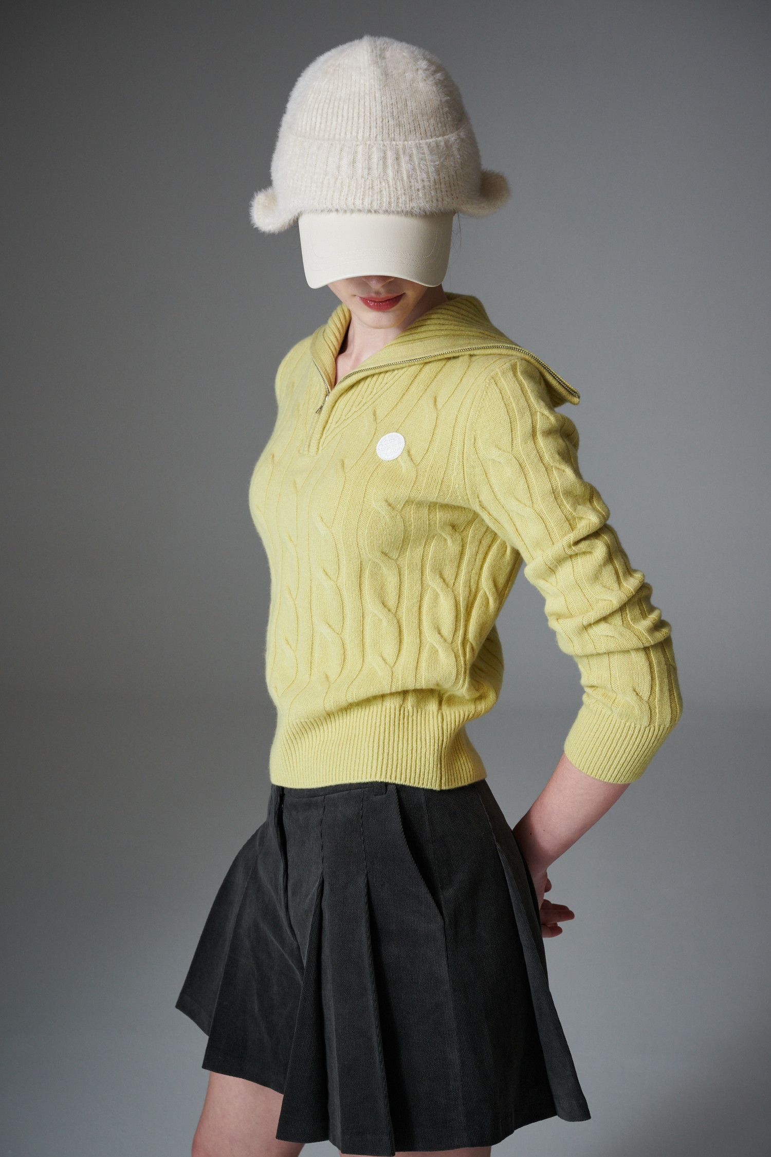 최상급 울 백 소재의 케이블 하프 집업 입니다