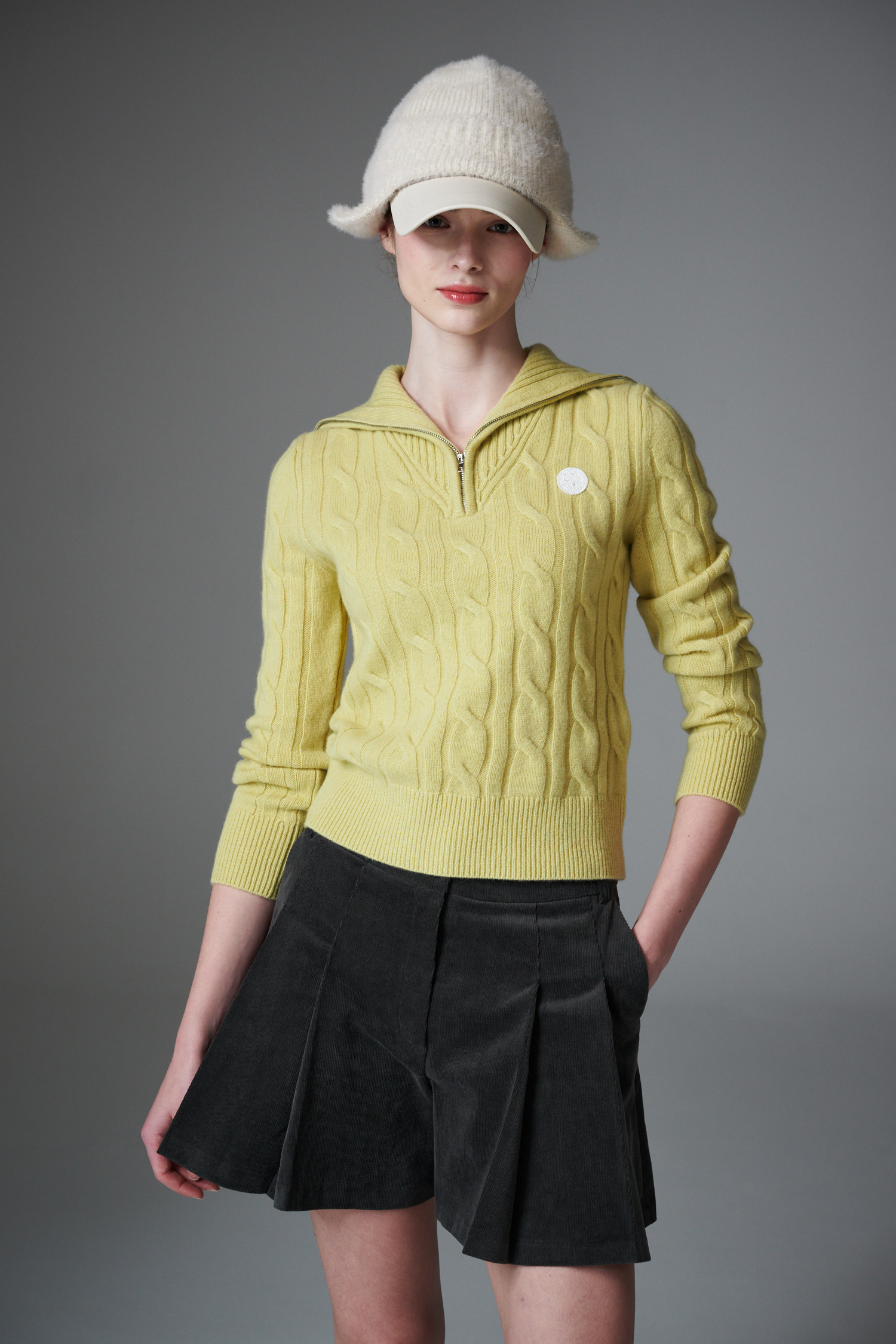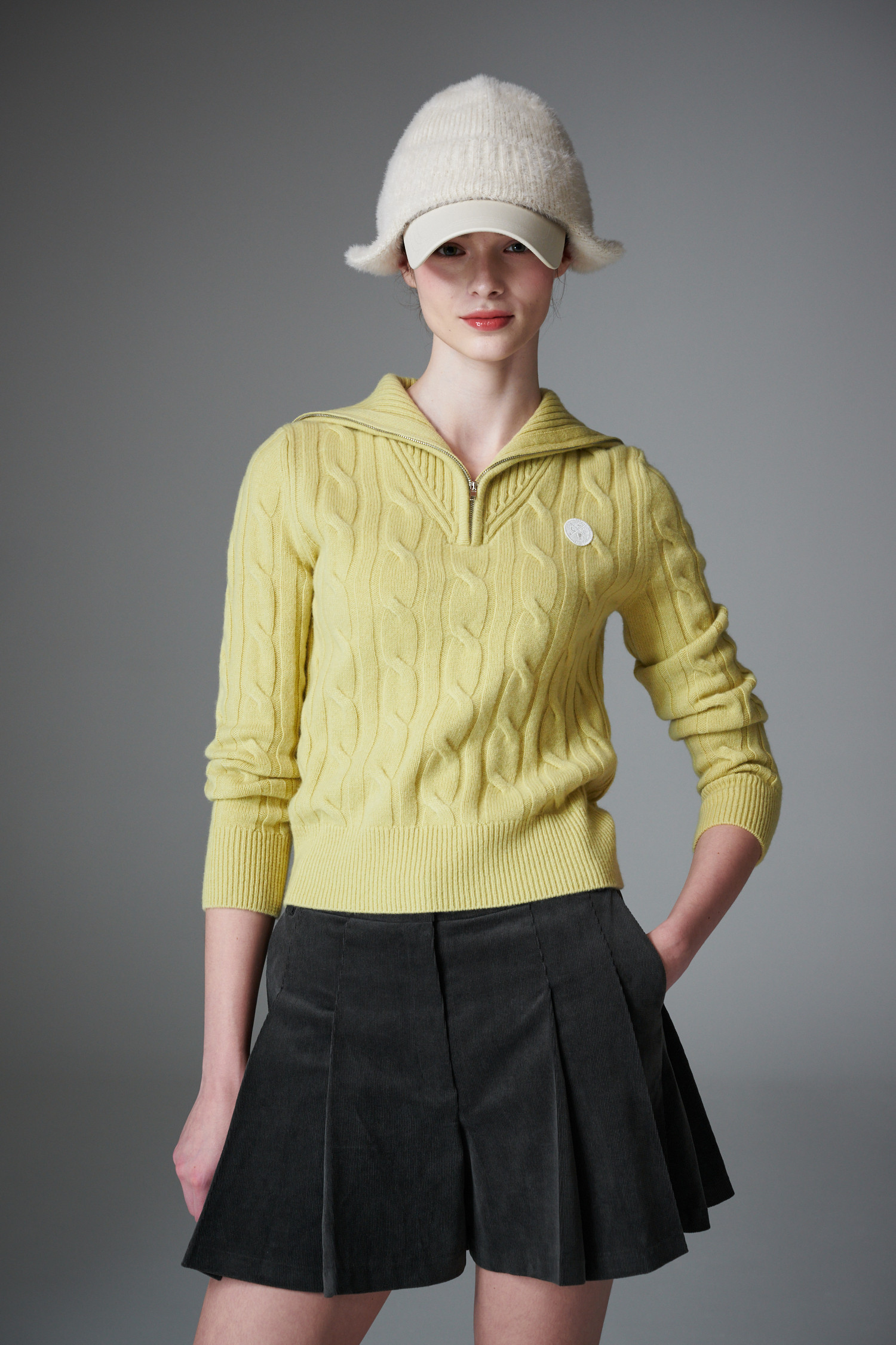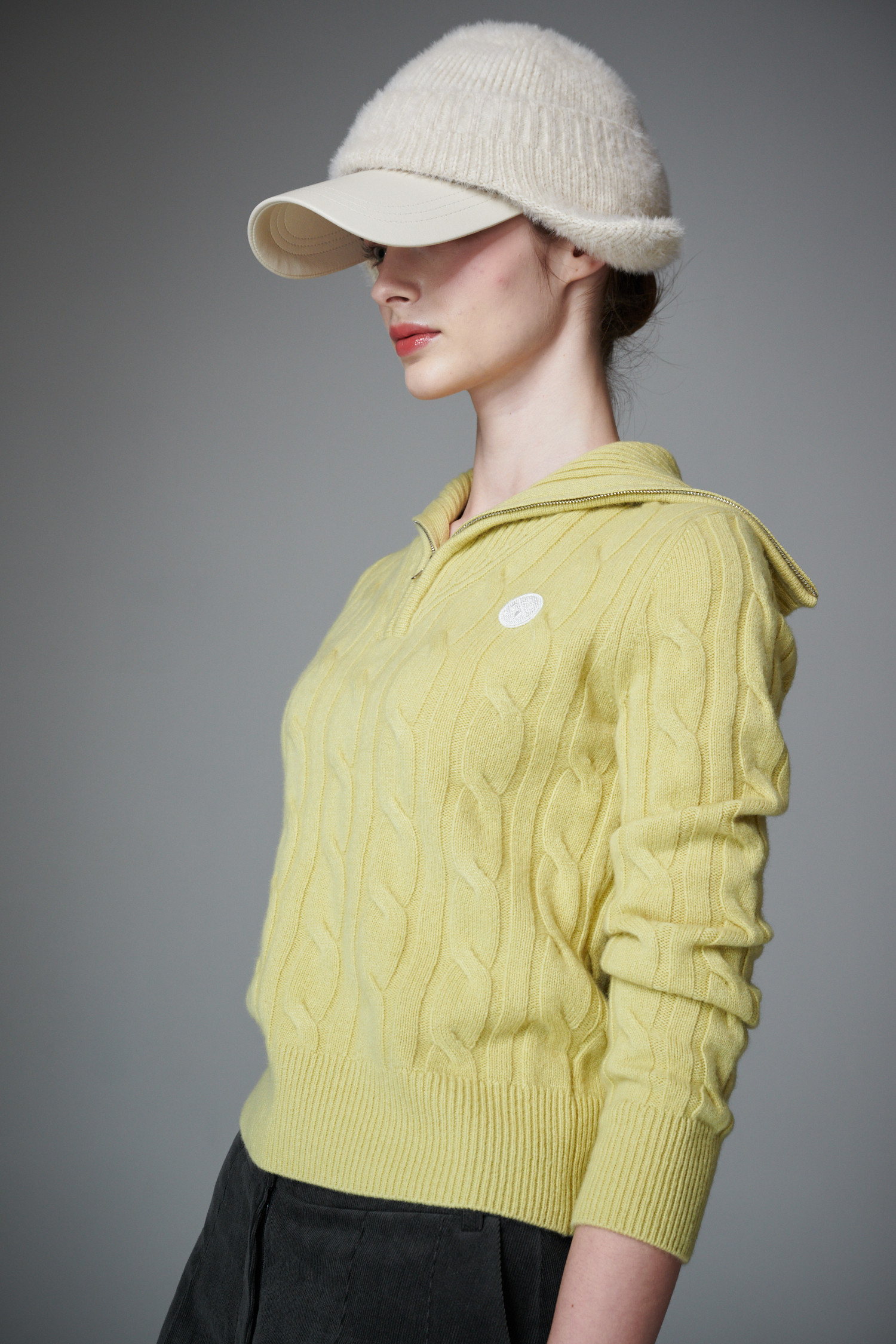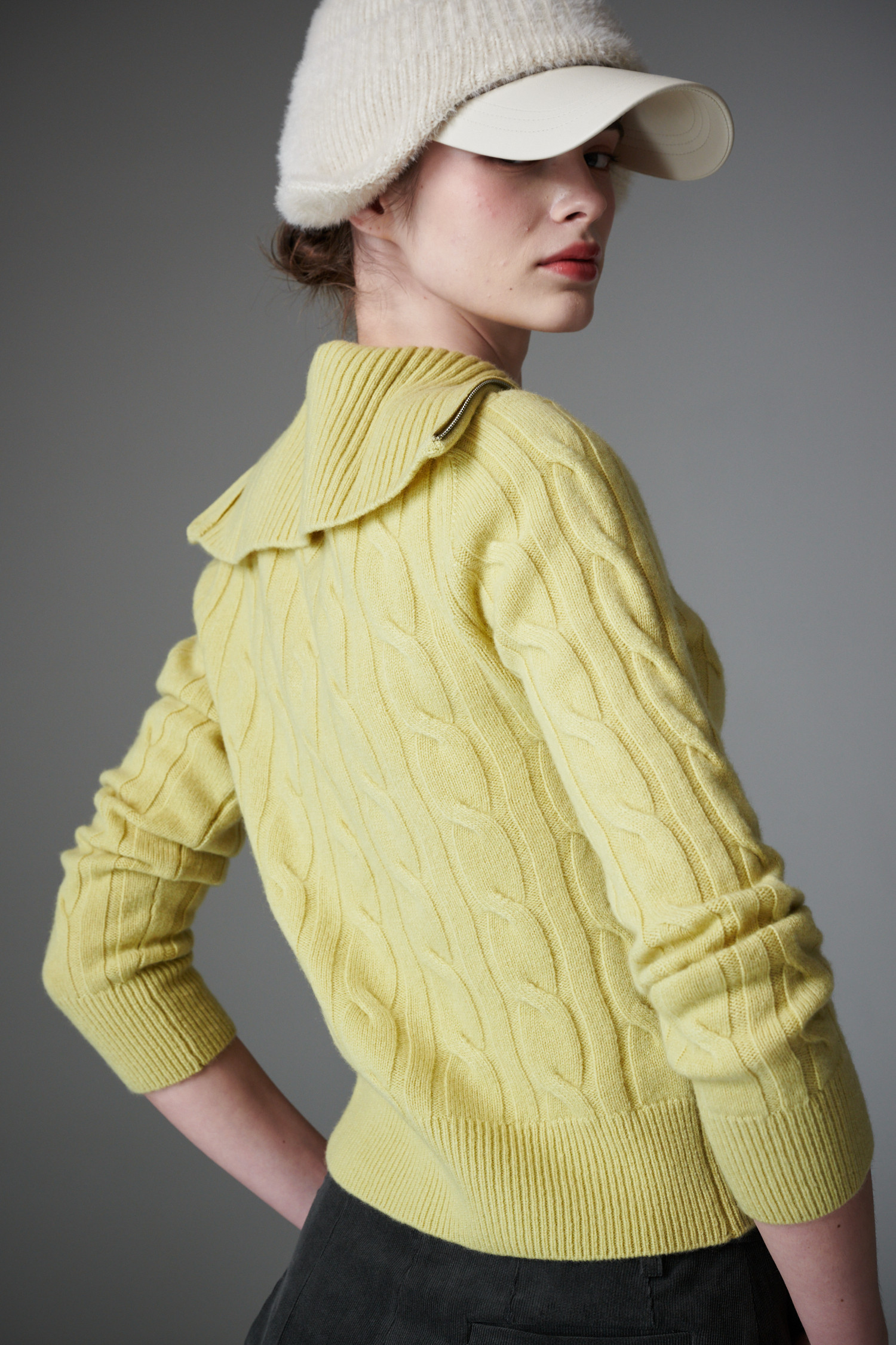 최상급 울 백 소재의 케이블 하프 집업 입니다