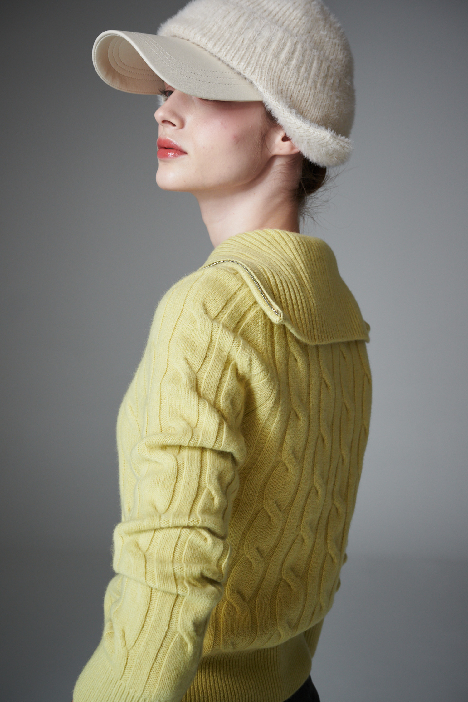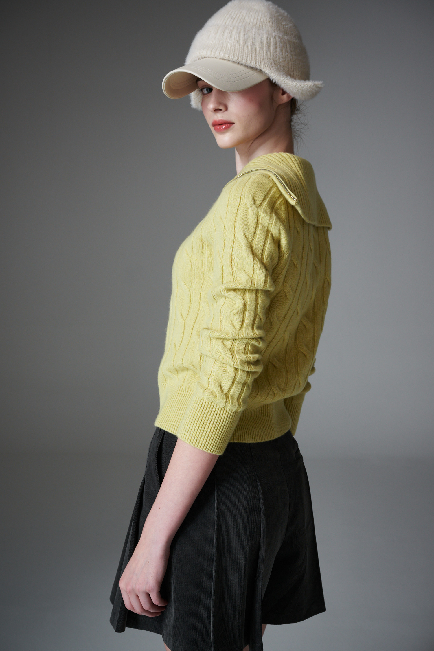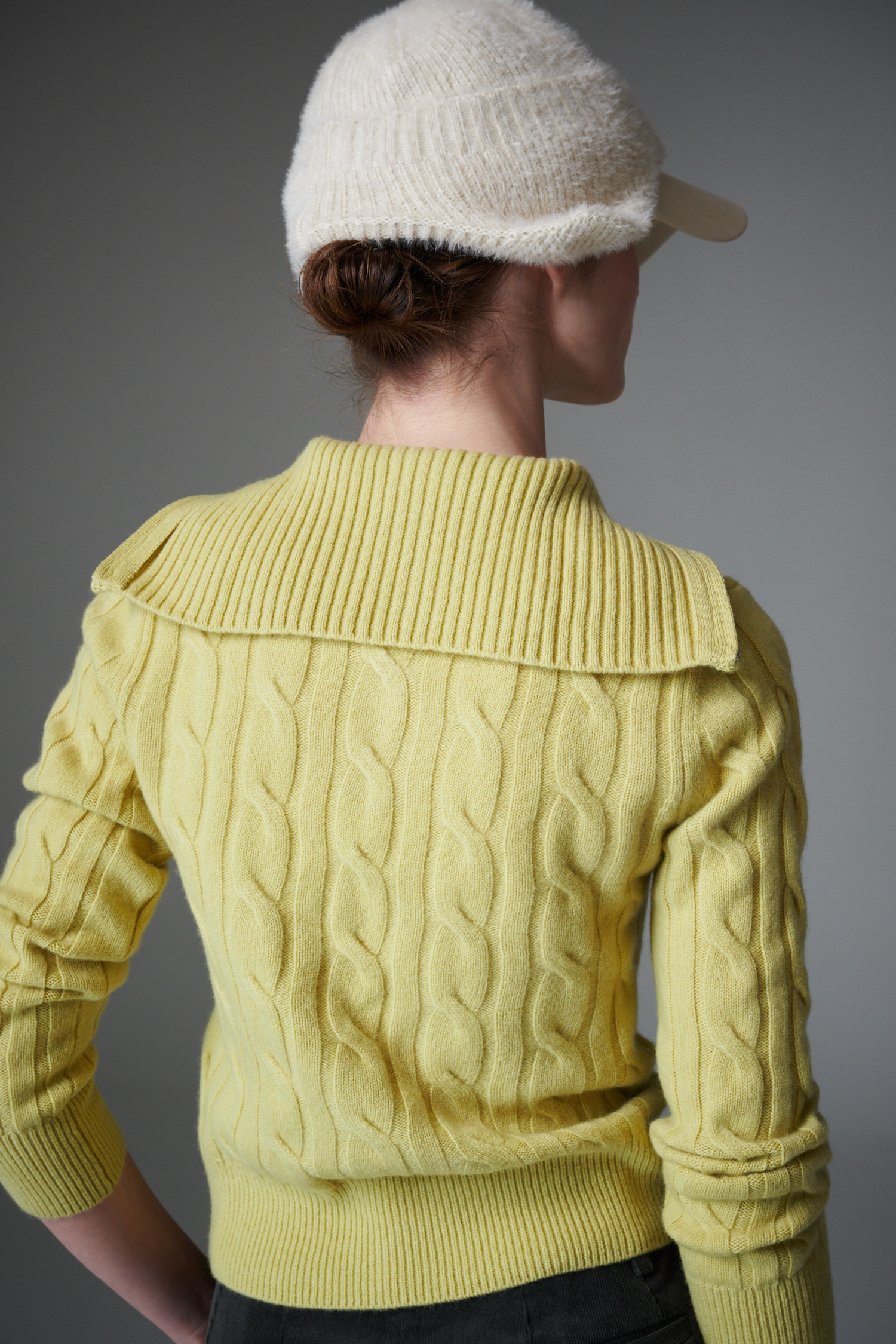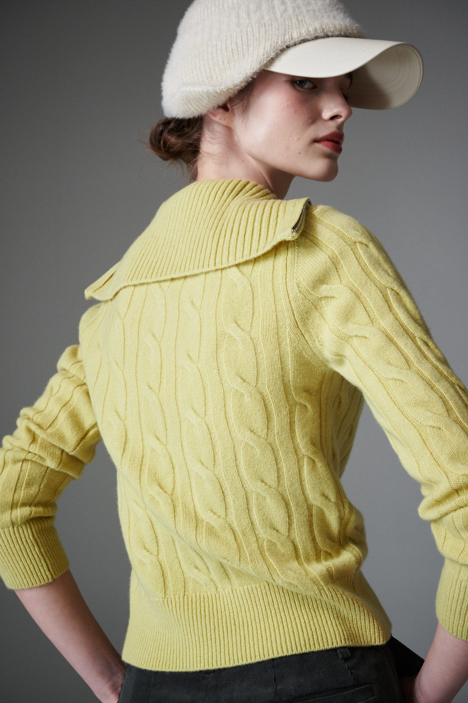최상급 울 백 소재의 케이블 하프 집업 입니다
