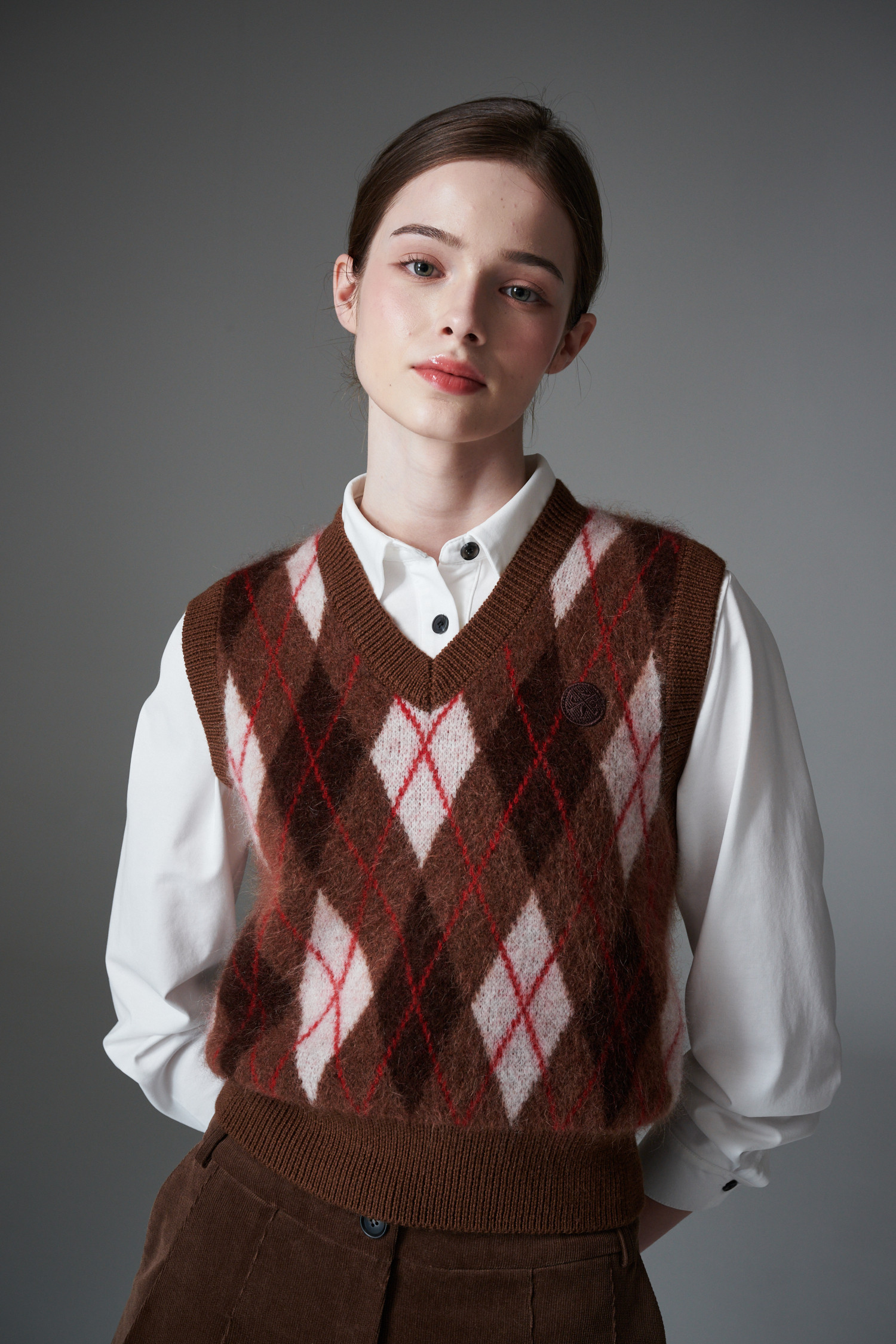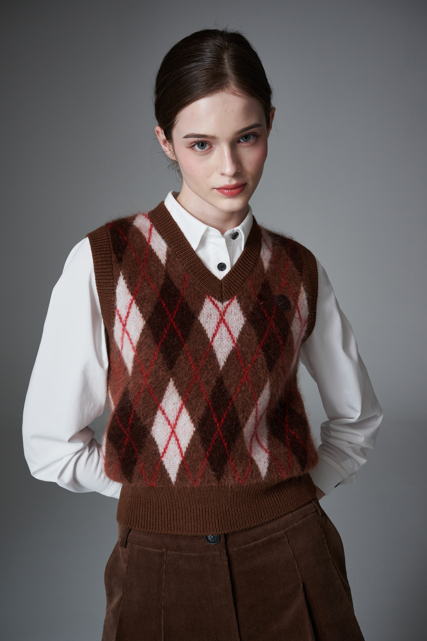 Mohair argyle VEST 모헤어 아가일 니트 베스트