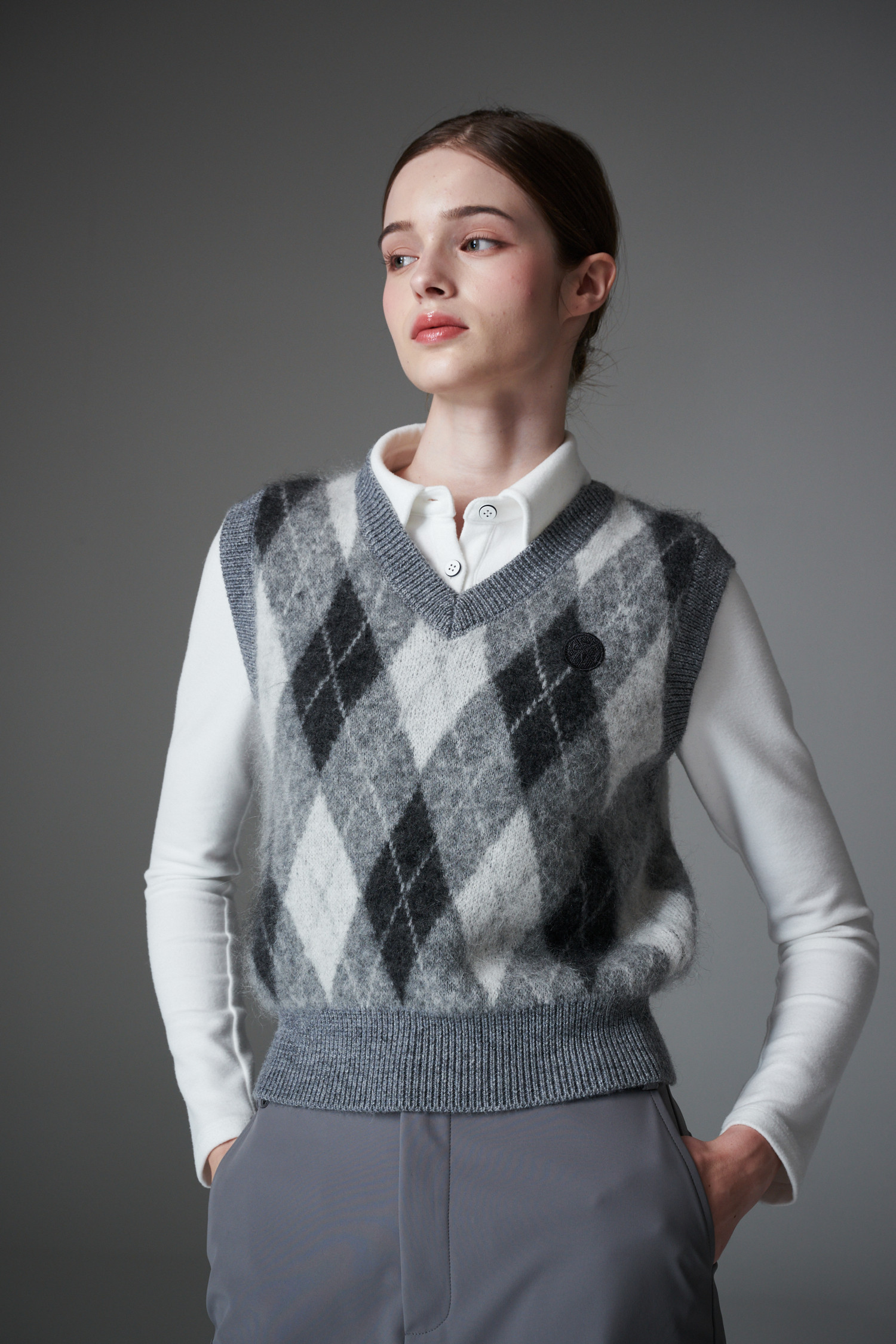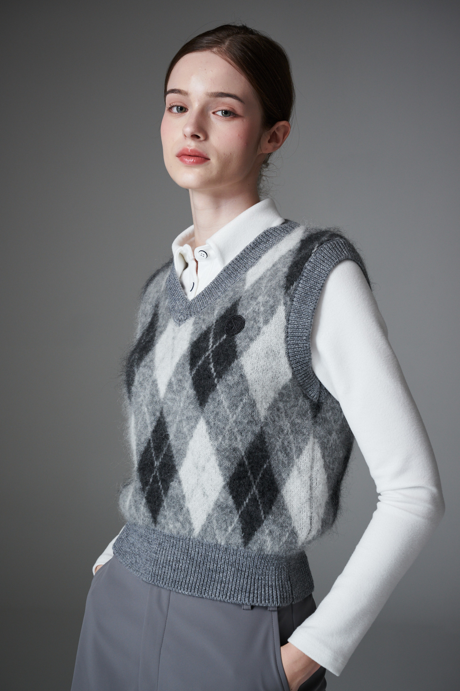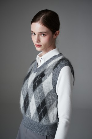 Mohair argyle VEST 모헤어 아가일 니트 베스트