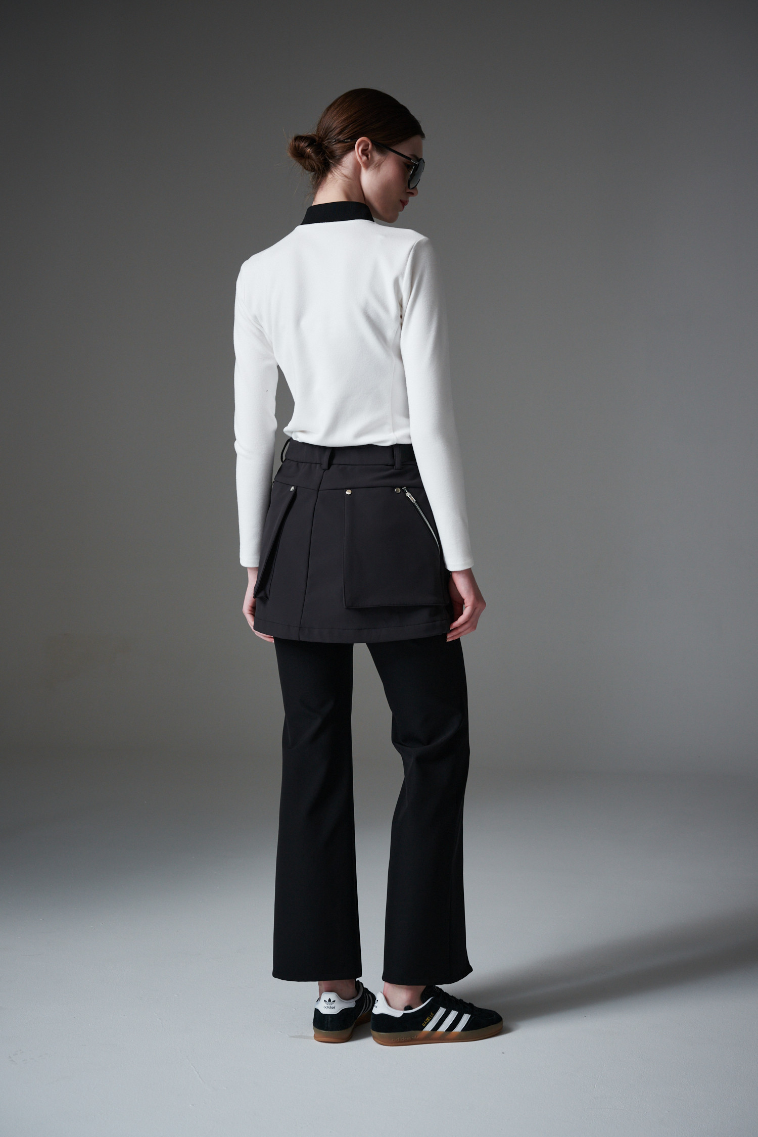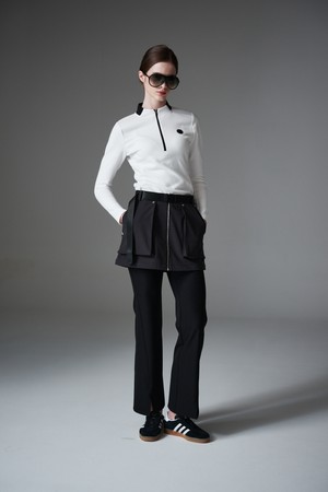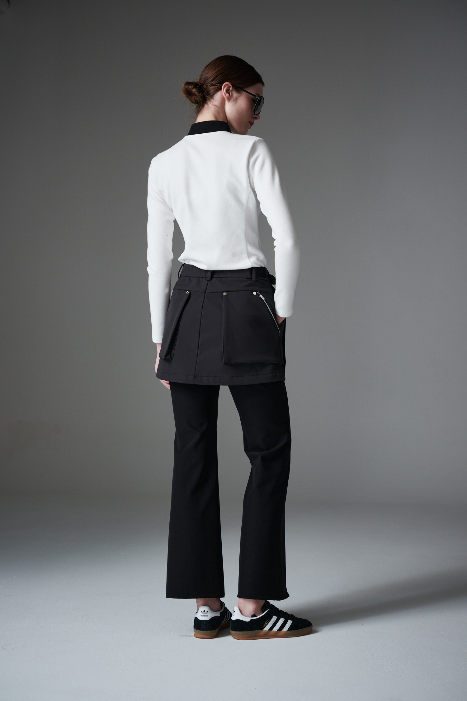 나일론 사방스판 소재의 세미 부츠컷 팬츠입니다