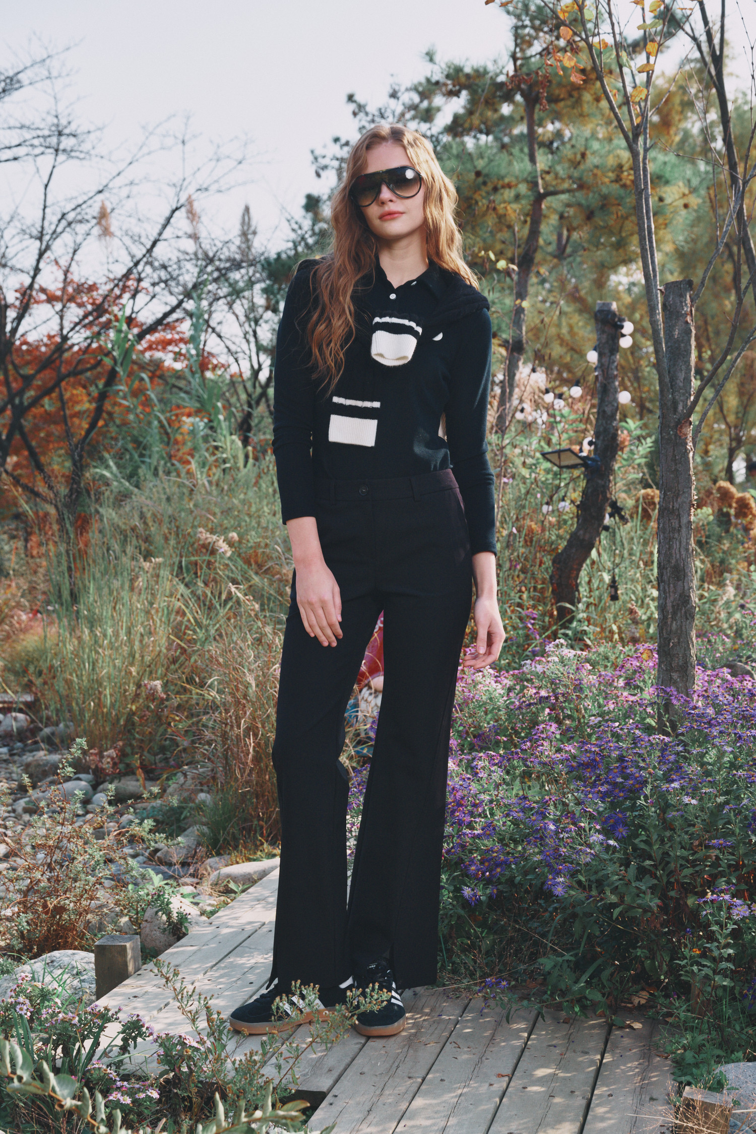 앞중심쪽에 슬릿 디자인이 다리가 더욱 길어 보이는 효과가 있는 디자인입니다
