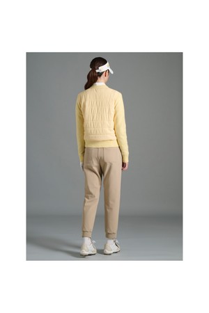 추운 날씨에 착용하기 좋은 따뜻한 하이브리드 카디건입니다. 앞면은 고급스러움이 느껴지는 원사를 사용했으며, 뒷면은 밀도 있게 직조된 우븐 소재에 충전재를 넣어 따뜻하면서도 가볍습니다. 마찰 시 소음이 적고 움직임이 편한 신축성 좋은 안감을 사용하여, 라운딩과 일상을 오가며 착용하기 좋은 아이템입니다.