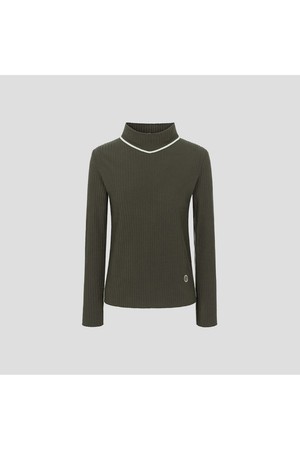 여성 하이넥 니트 풀오버 카키