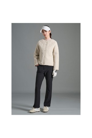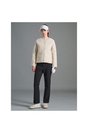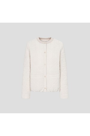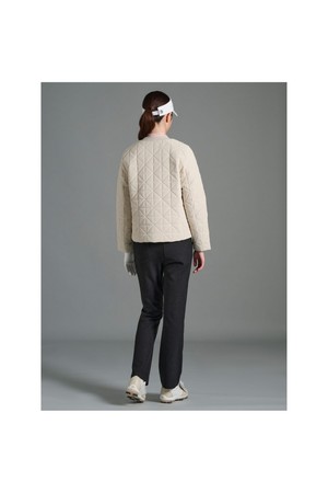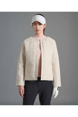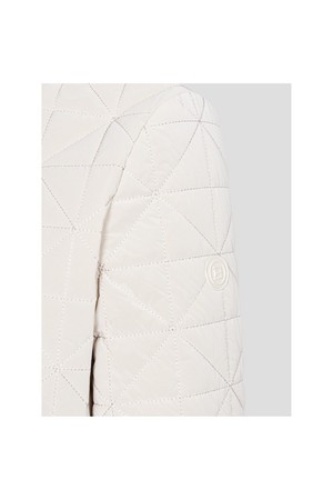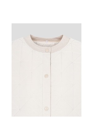 가볍게 걸치기 좋은 나일론 소재의 퀼팅 점퍼입니다. 은은한 광택이 느껴지는 원단에, 변형 다이아몬드 문양의 자수 퀼팅과 금속 스냅 단추 여밈으로 고급스러운 매력을 자아냅니다. 스커트나 팬츠에 모두 코디하기 용이한 아이템입니다.