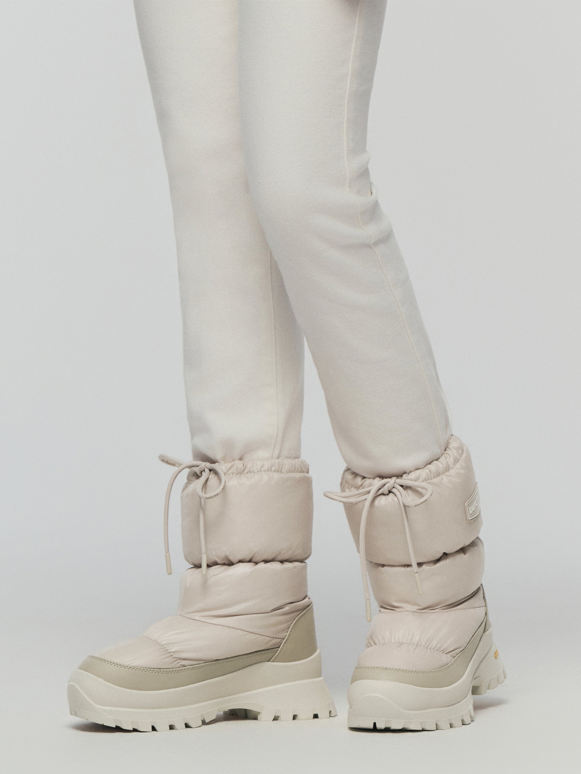 - 글로시한 펄감의 소재에 프리마로프트 충전재를 사용하여 우아하면서도 따뜻한 착화감을 제공