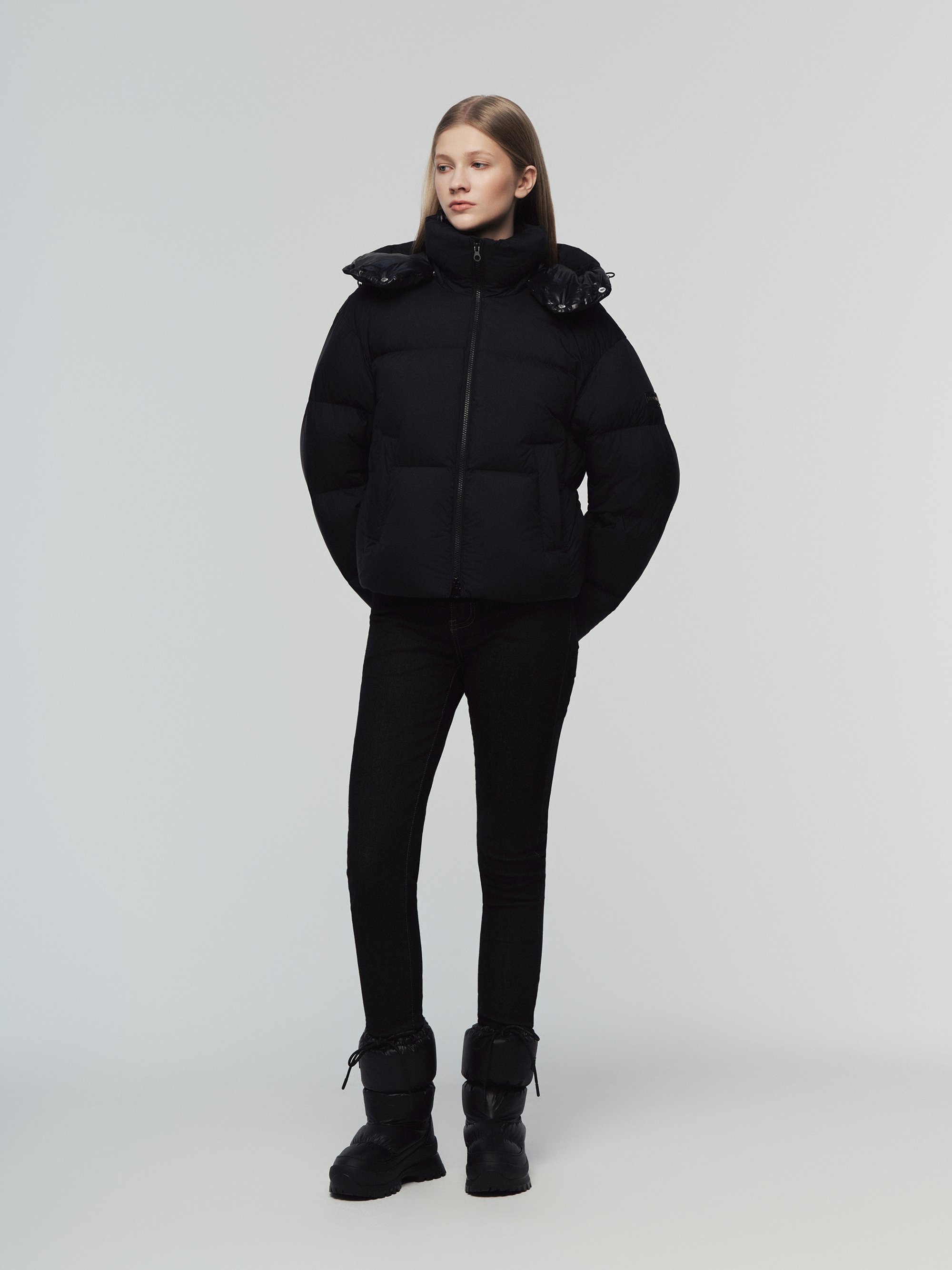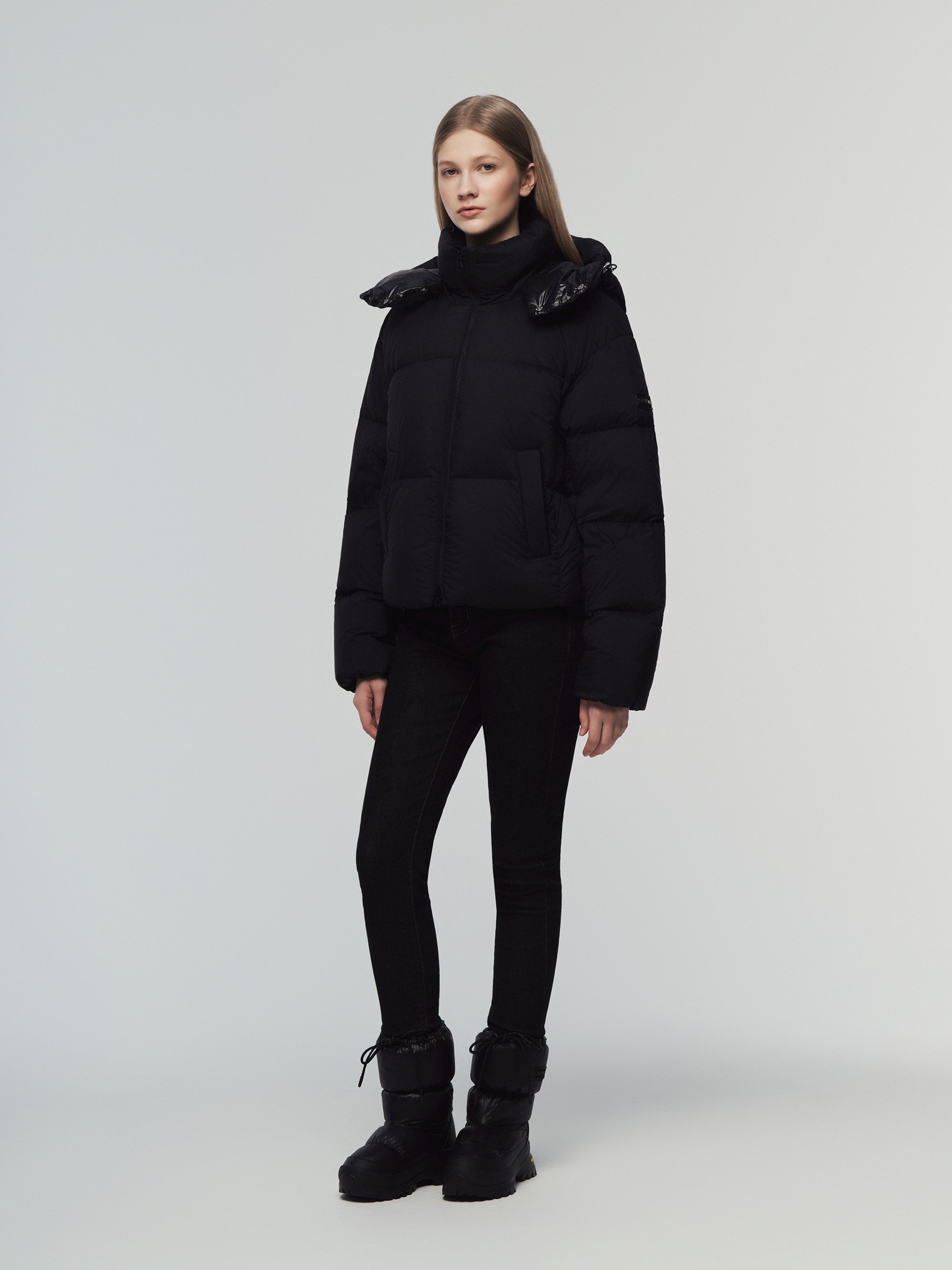 - 글로시한 펄감의 소재에 프리마로프트 충전재를 사용하여 우아하면서도 따뜻한 착화감을 제공