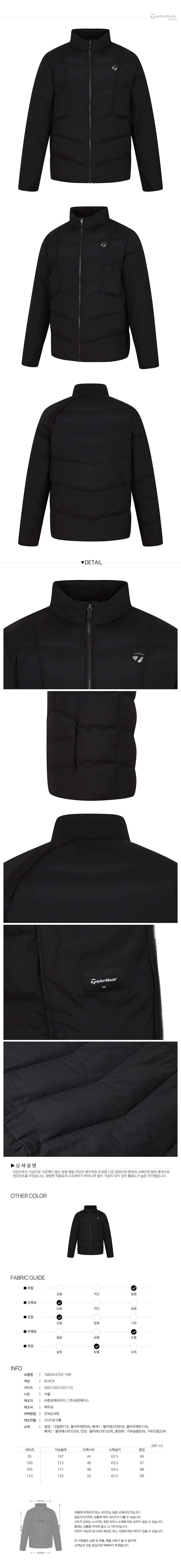 [테일러메이드] 25FW 남성 베이직 다운 점퍼 TMDJO4702-199