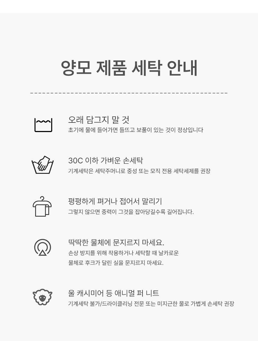 품질보증기준손상되었거나 품질에 이상이 있는 제품에 한하여 소비자피해보상규정 에 의거 보상하여 드립니다.단, 제품에 부착되어 있는 사용방법 및 취급시주의사항에 따라 제품을 관리해 주시고, 소비자 부주의로 인한 품질 이상 및 변형에 대해서는 책임을 지지 않습니다