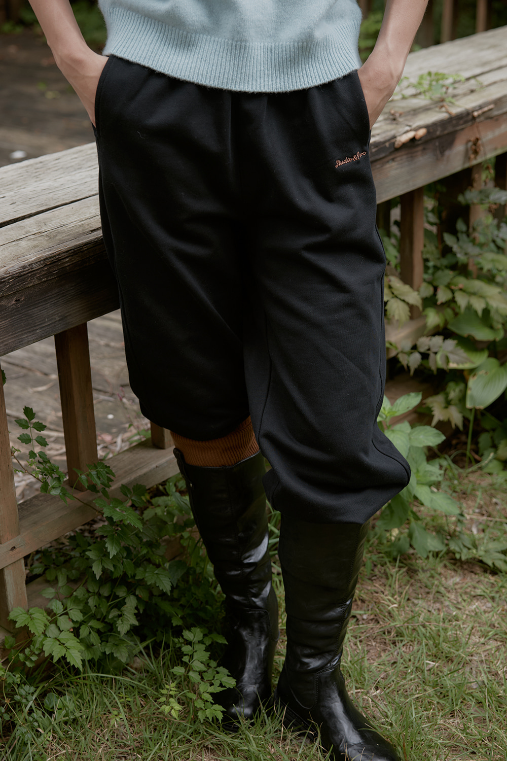 밑단 스트링 디테일로 다양한 실루엣 연출이 가능한 스웻팬츠입니다.