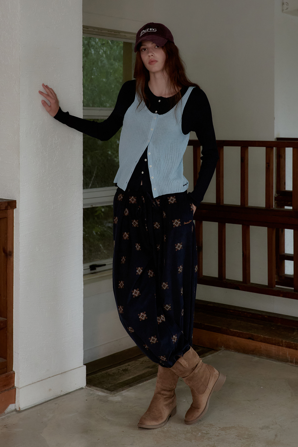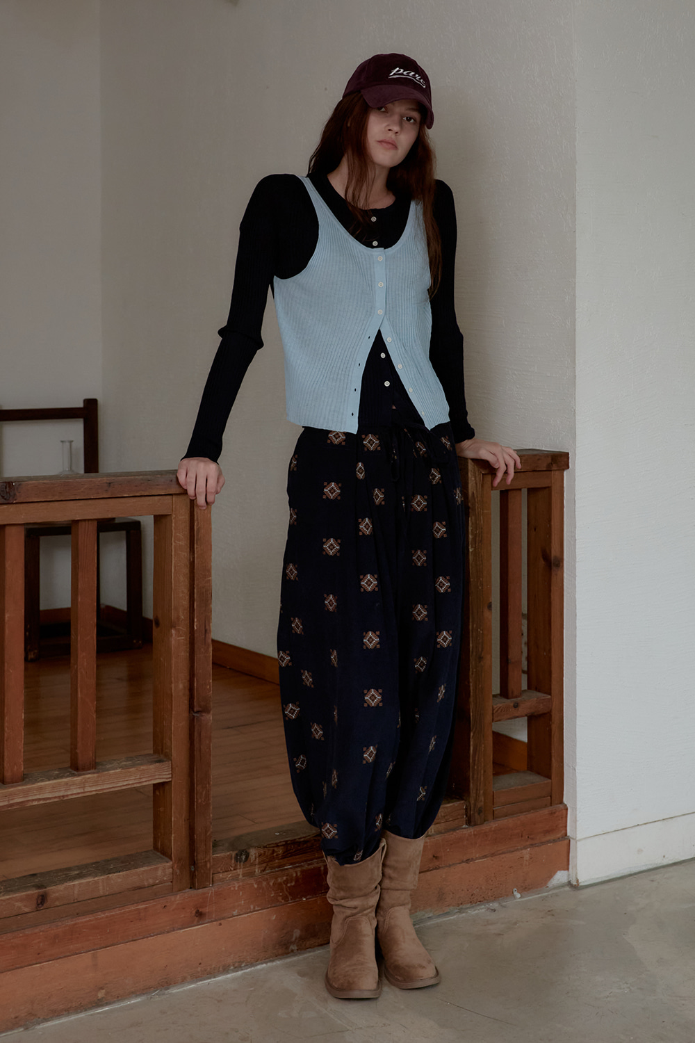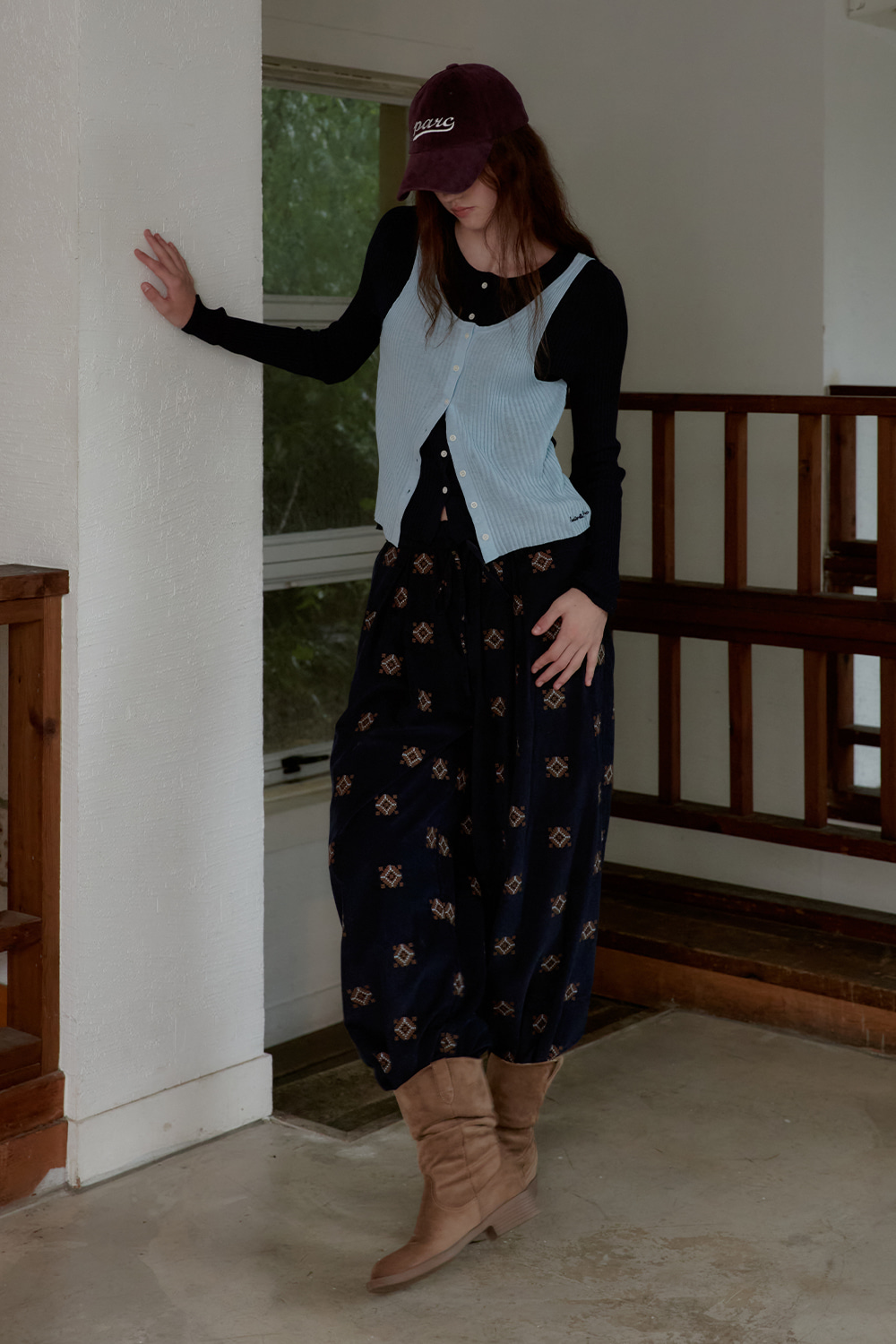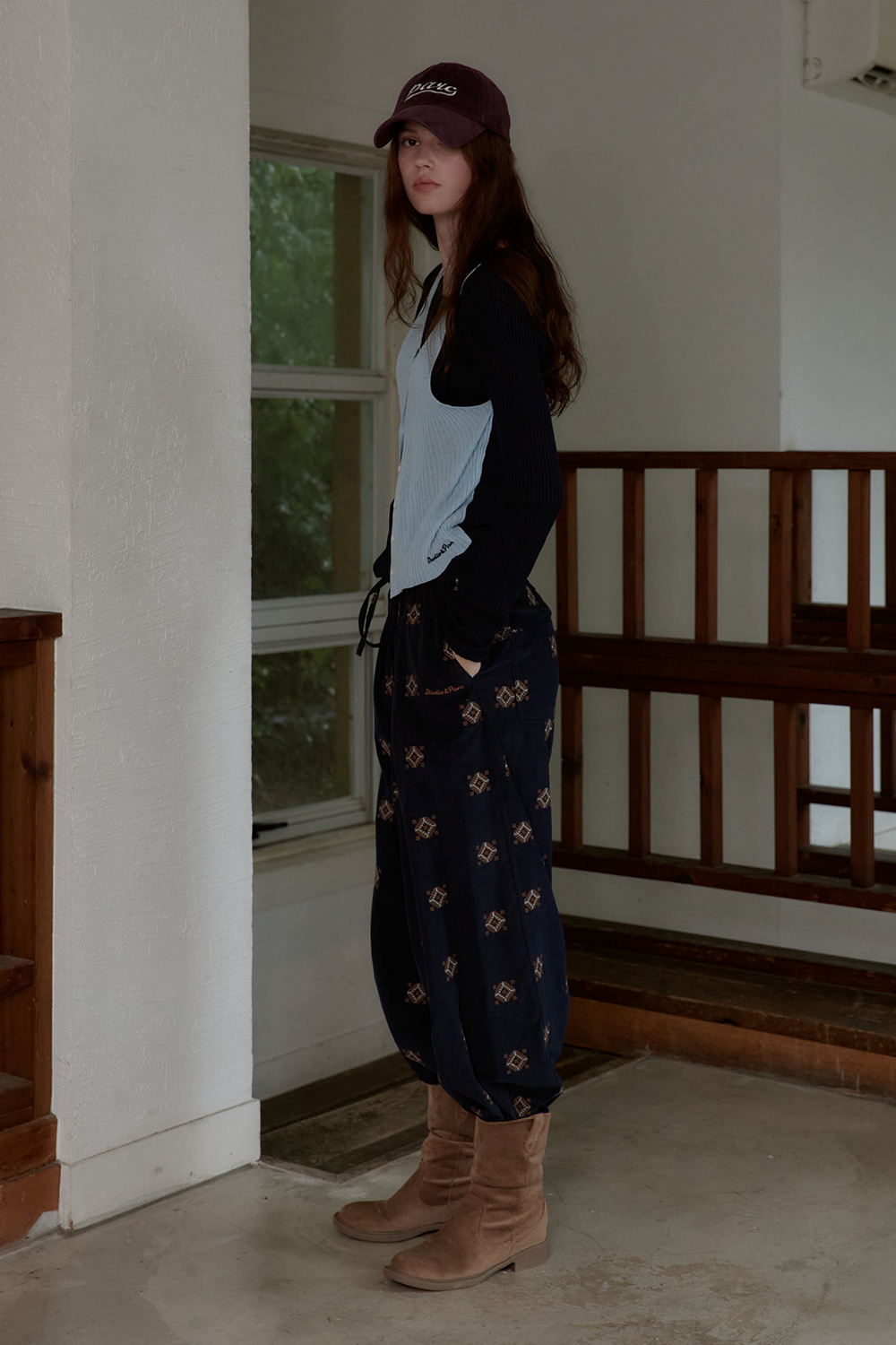 소프트한 터치감의 패브릭에 에스닉 자수를 더한 코듀로이 팬츠입니다.