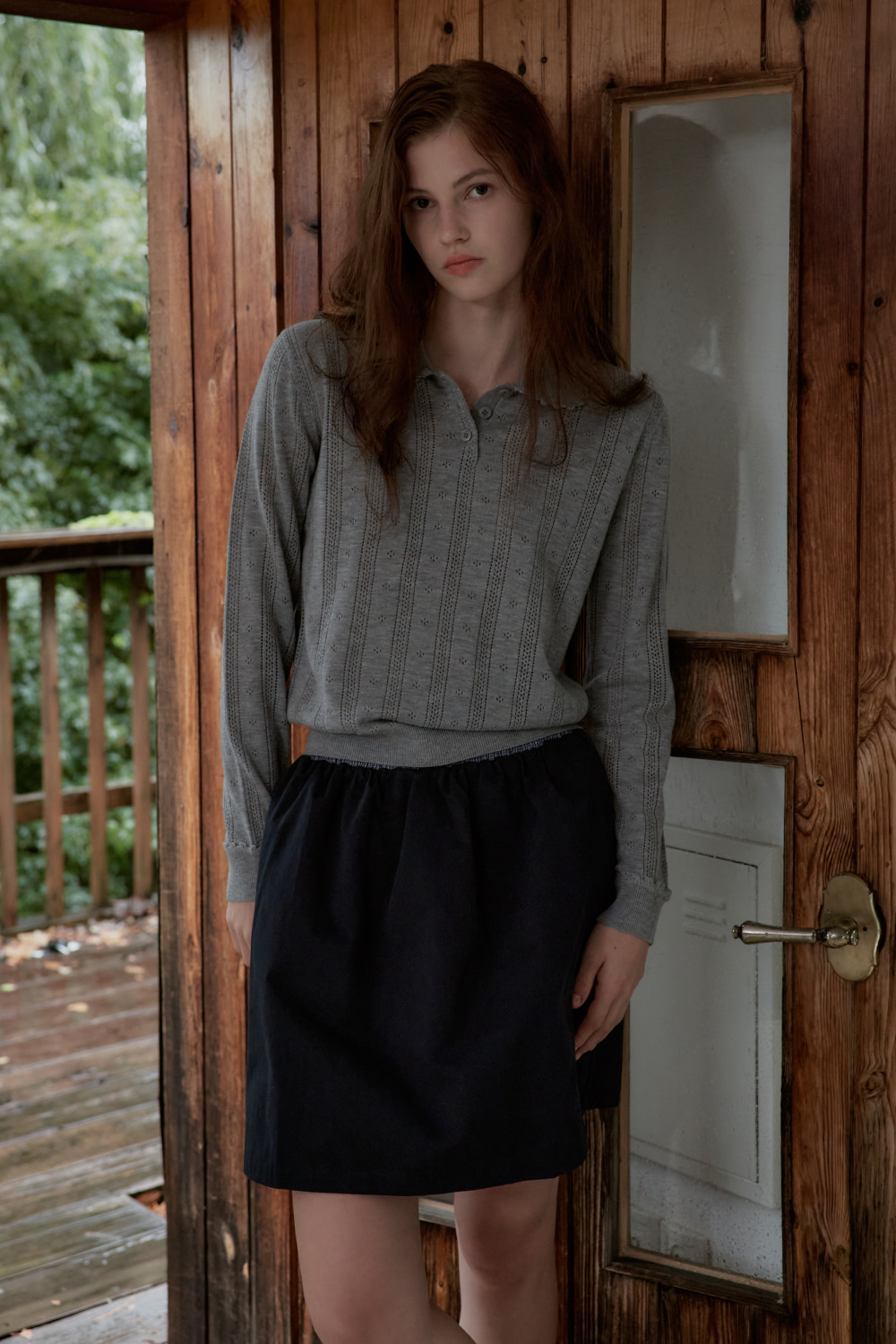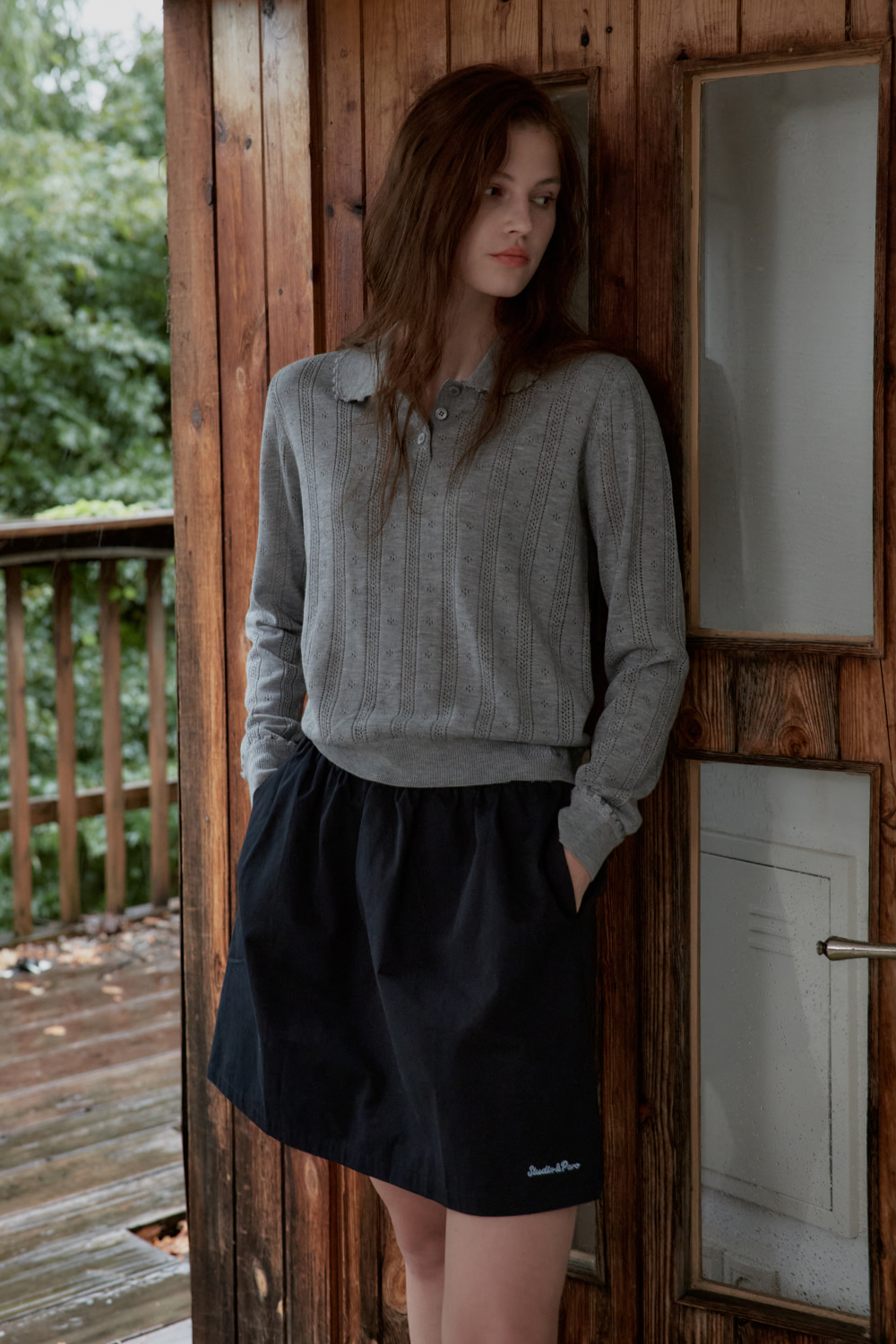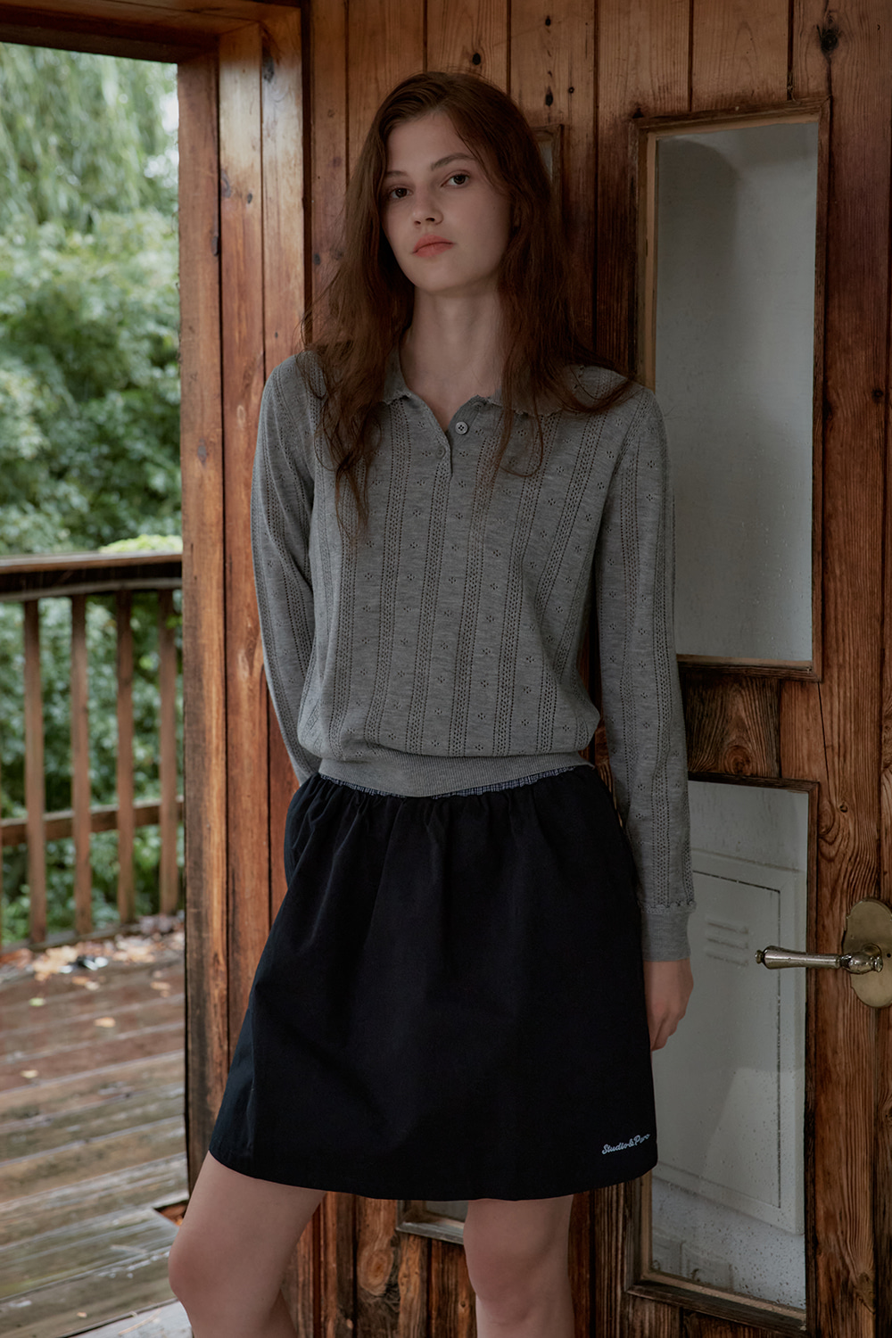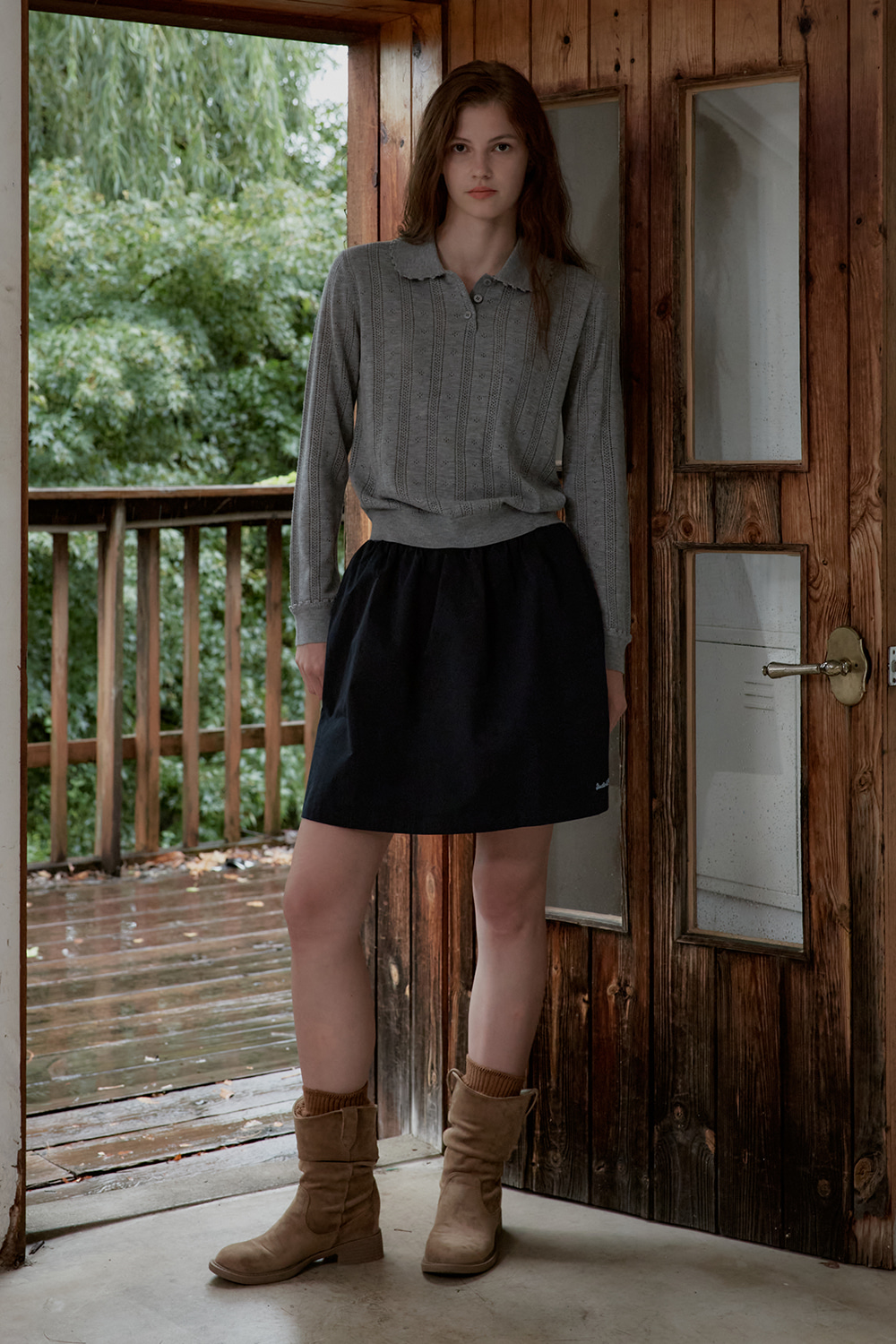 배색 밴딩 디테일로 포인트를 준 A라인 스커트입니다.