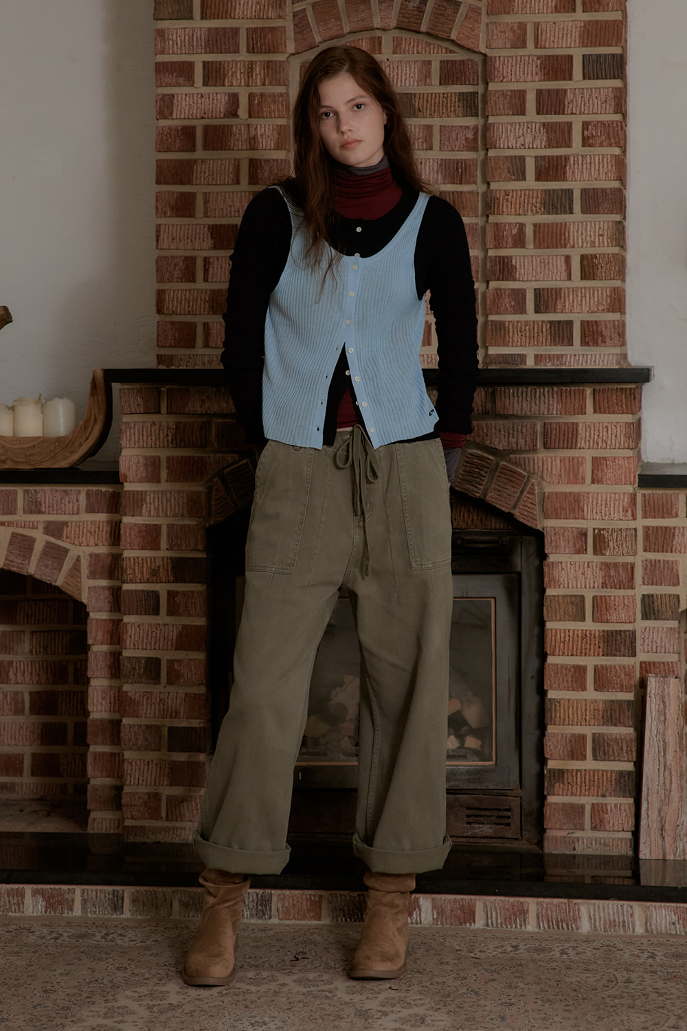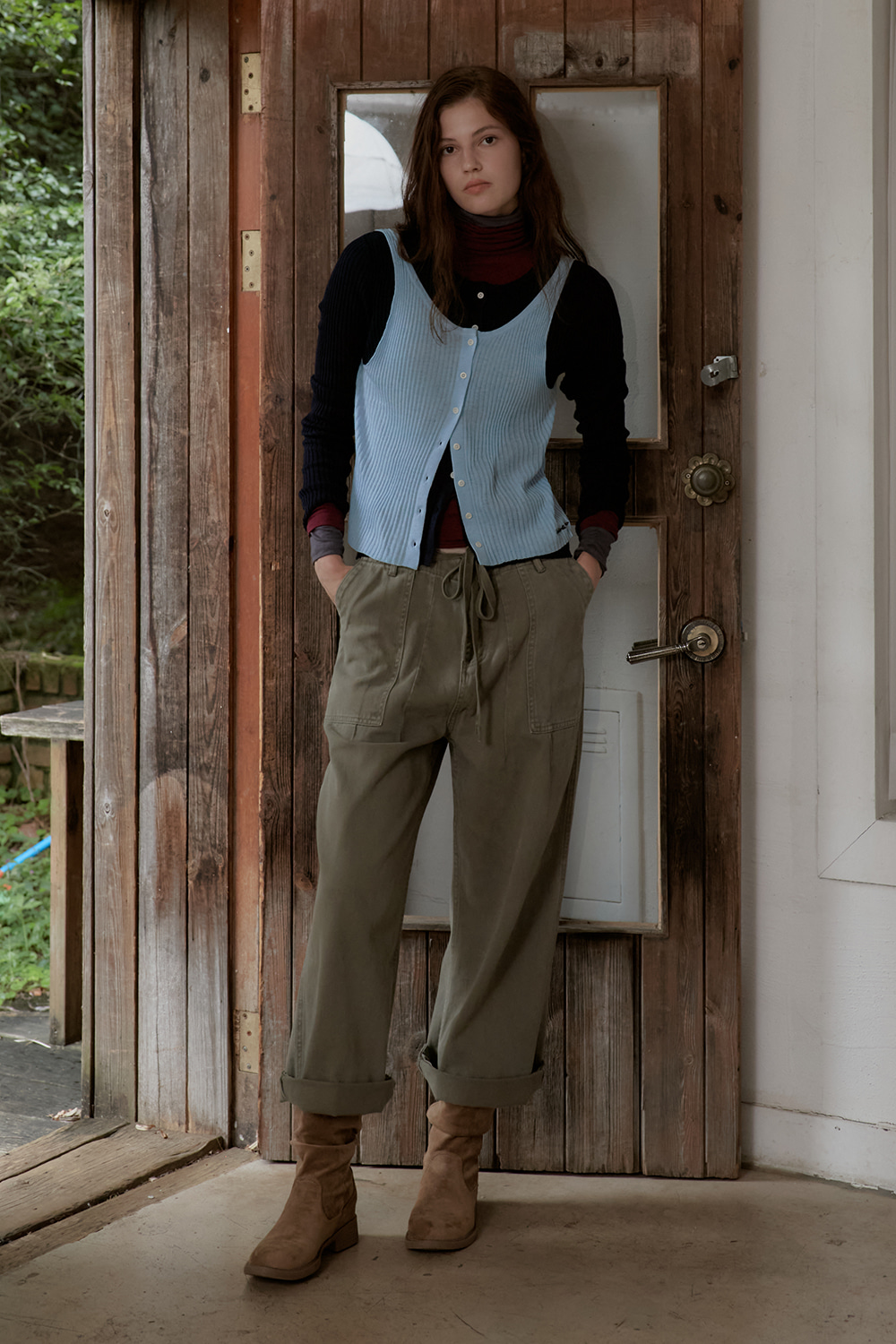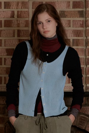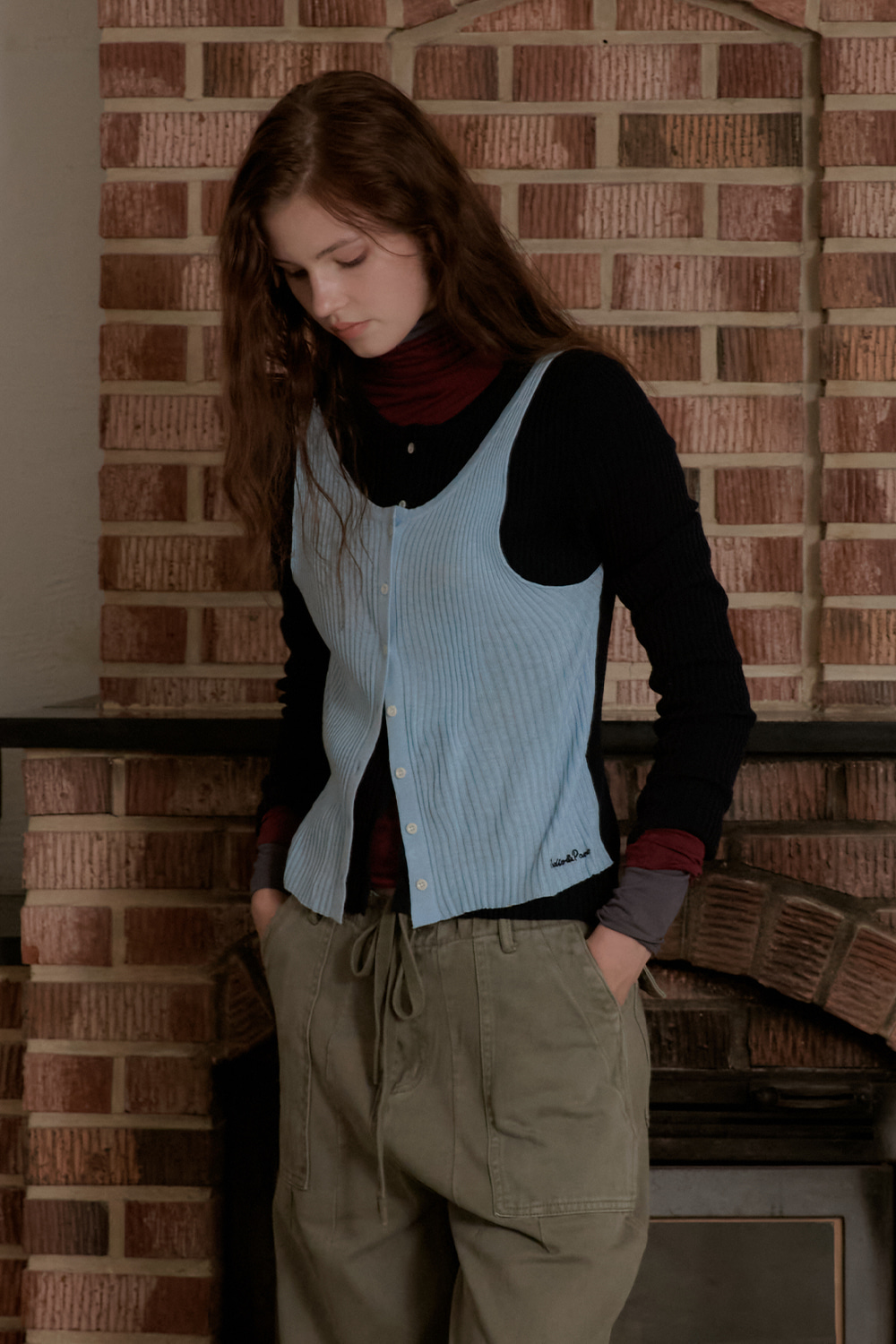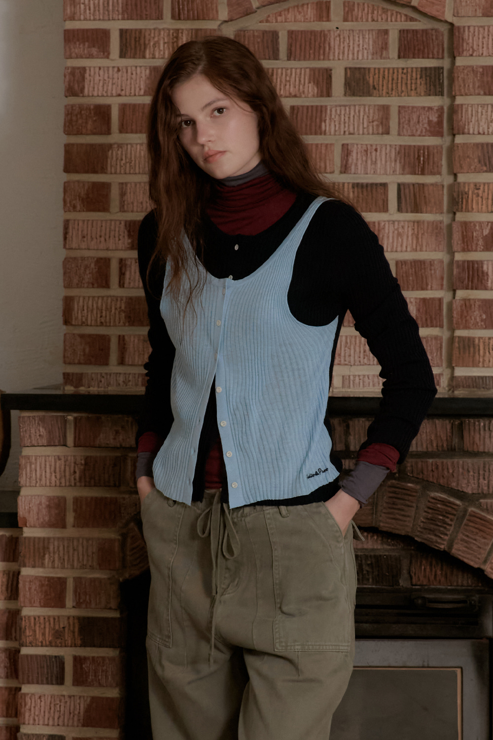 세로 골지 짜임으로 슬림한 실루엣을 강조했습니다.