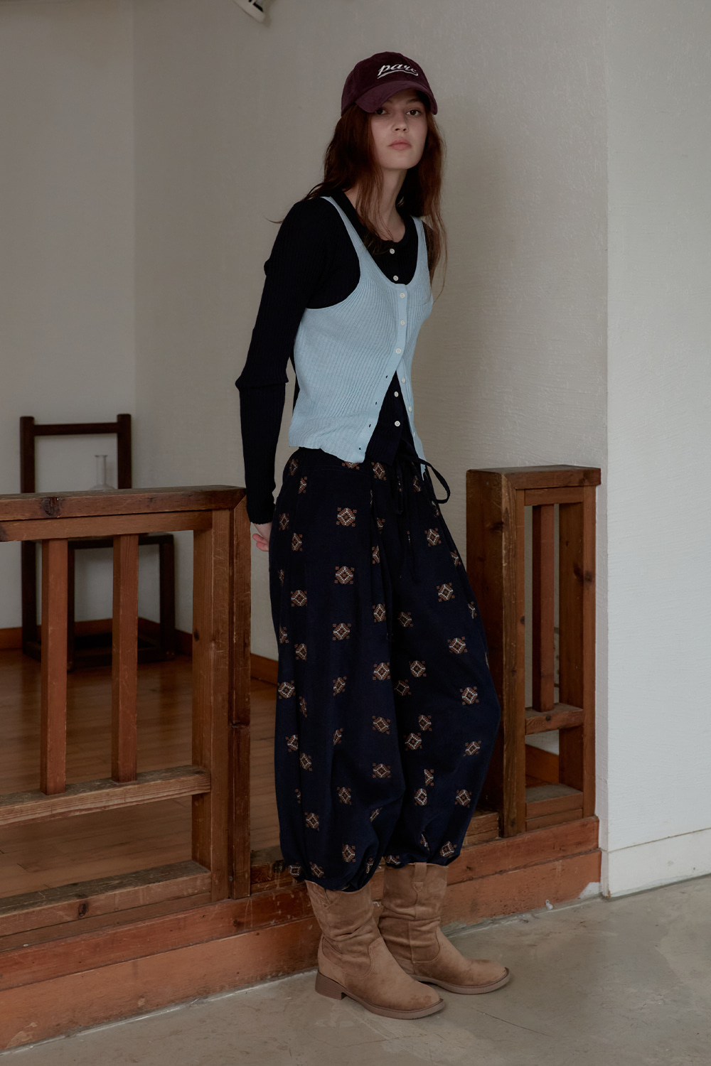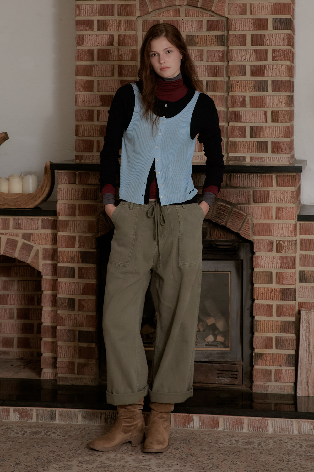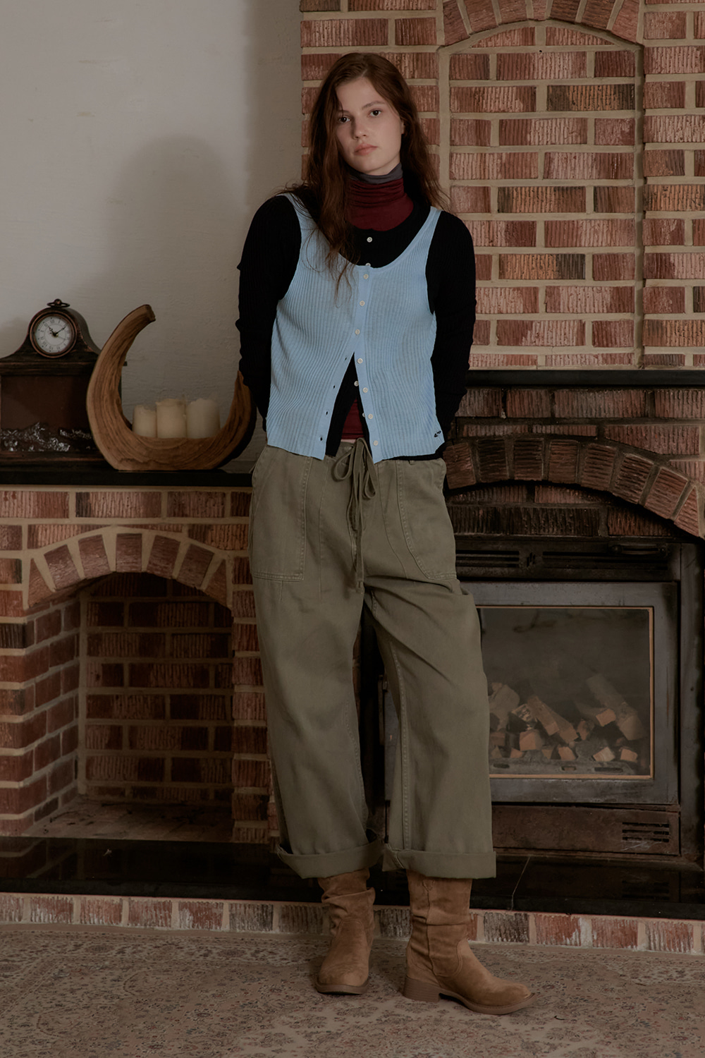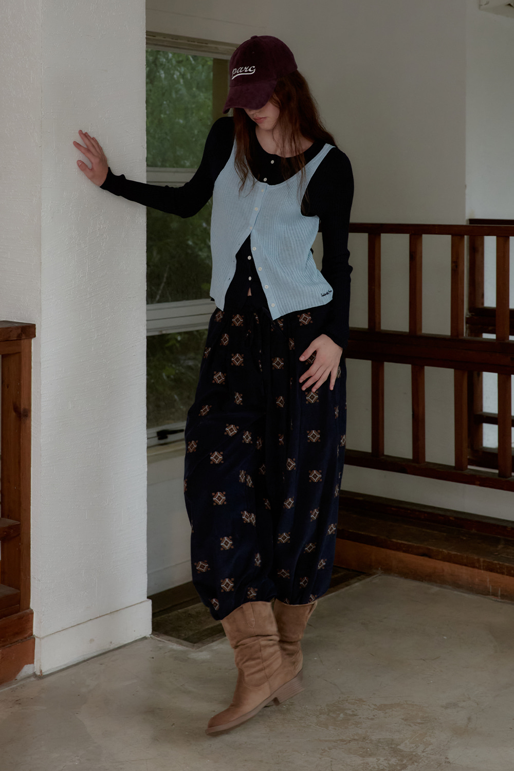 세로 골지 짜임으로 슬림한 실루엣을 강조했습니다.