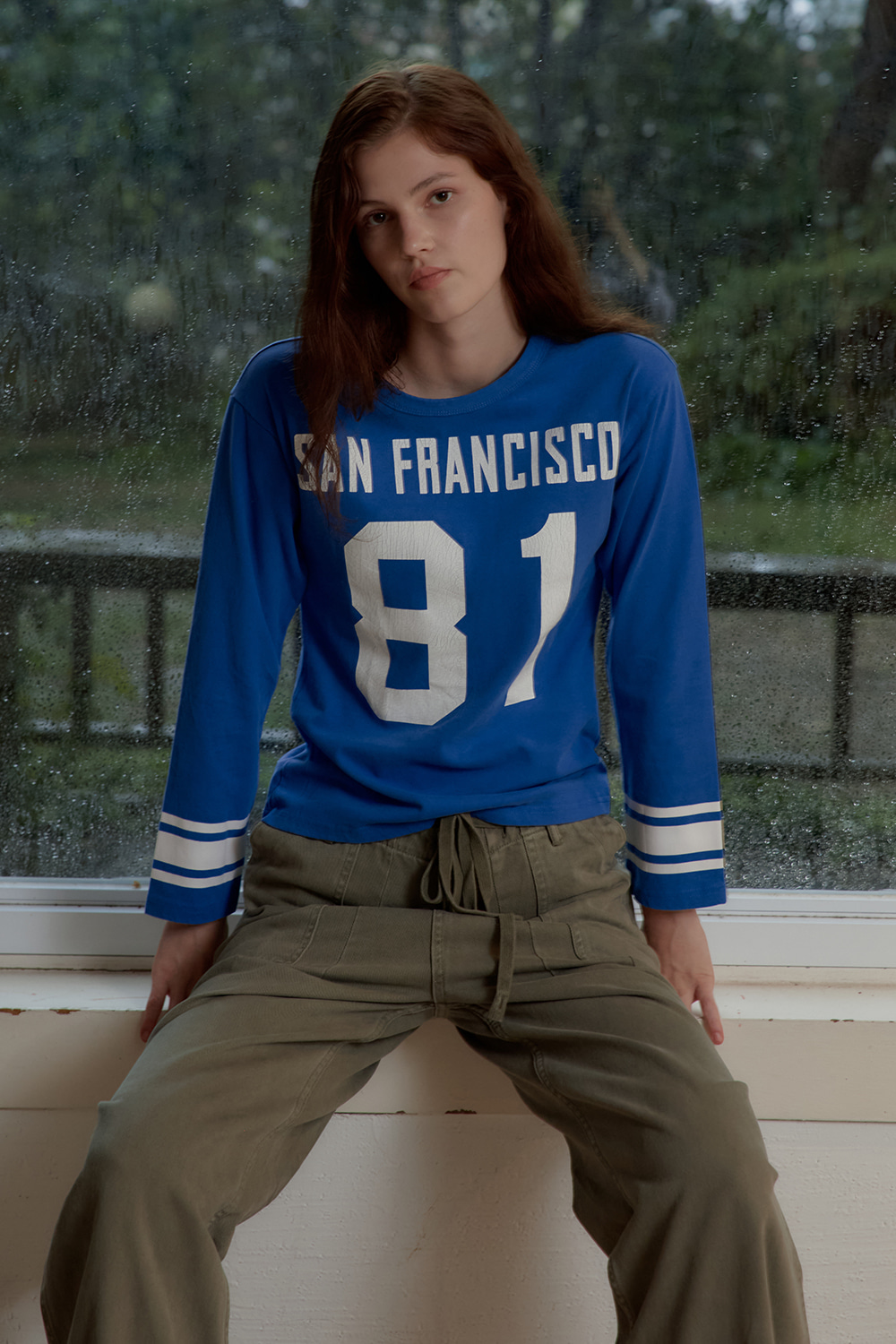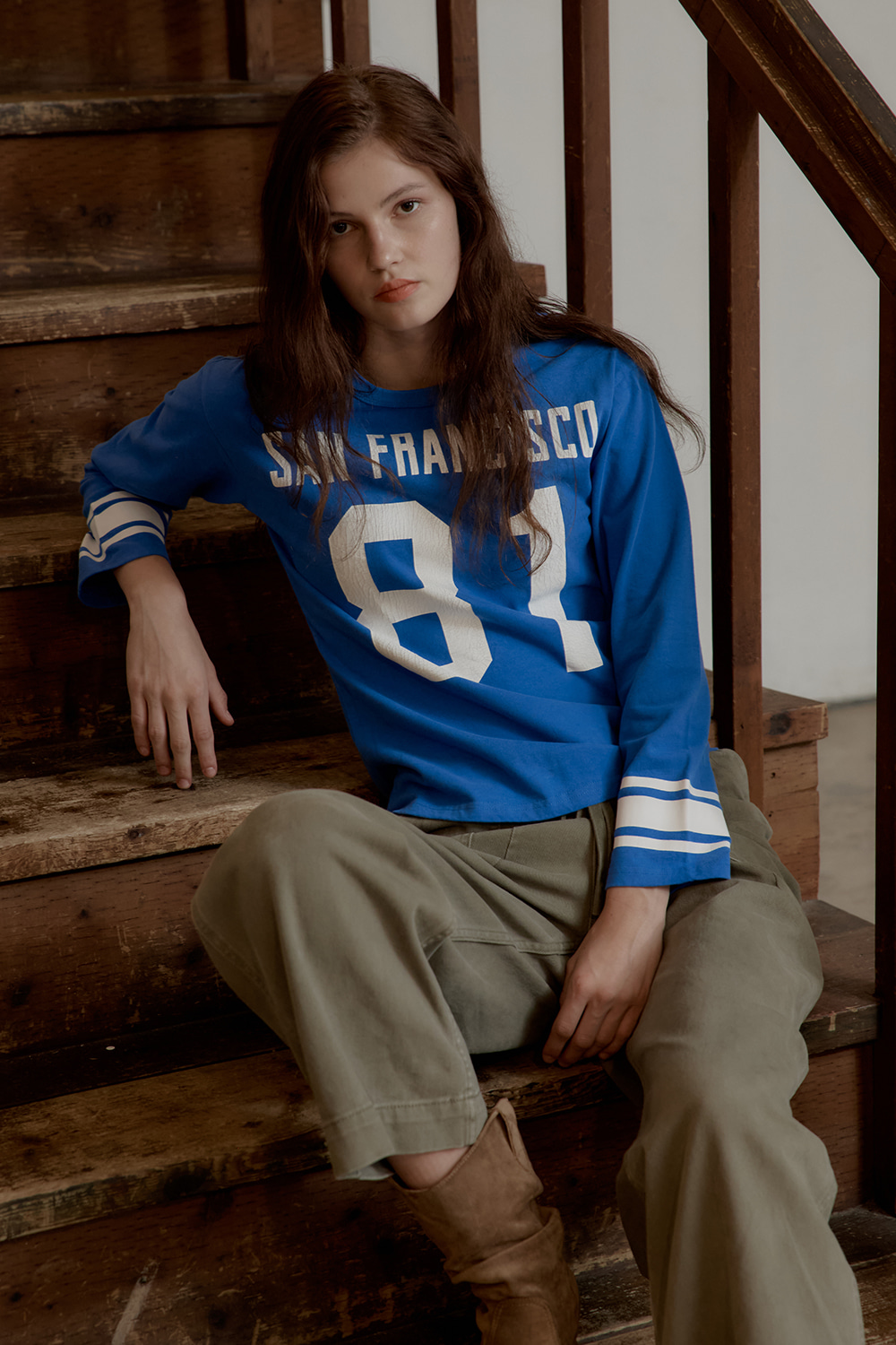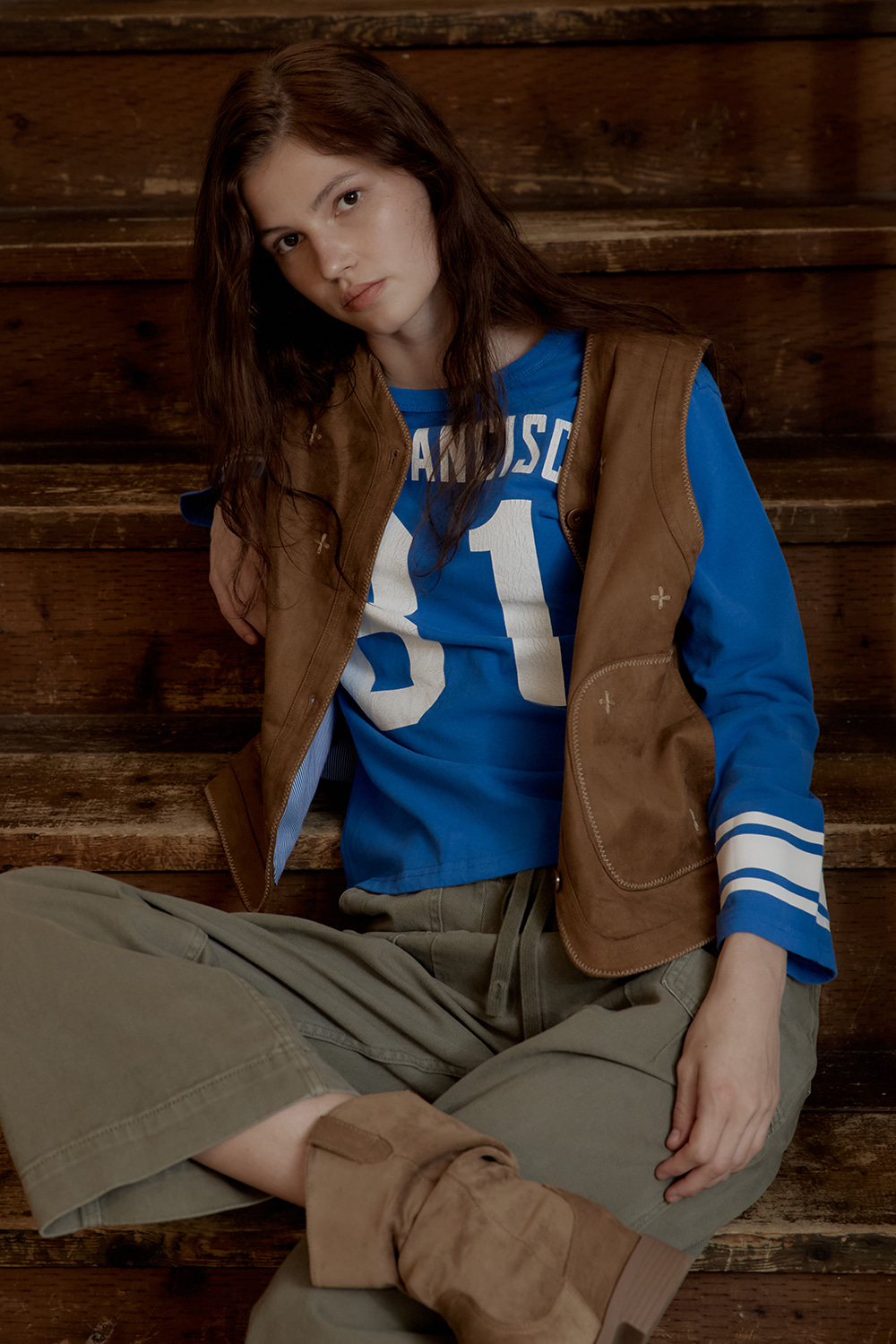 전면에 크랙 가공된 빅 프린트로 캐주얼한 무드를 더했습니다.
